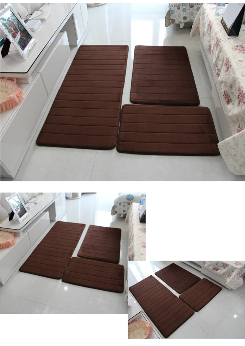 3 шт.компл. утолщенный напольный ковер для гостиной, нескользящий Набор ковриков для ванной комнаты, прикроватный длинный коралловый флисовый коврик под дверь спальни, 10 цветов