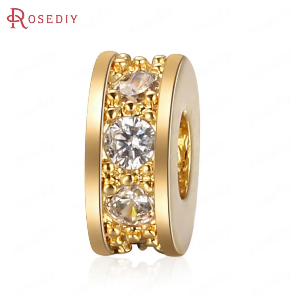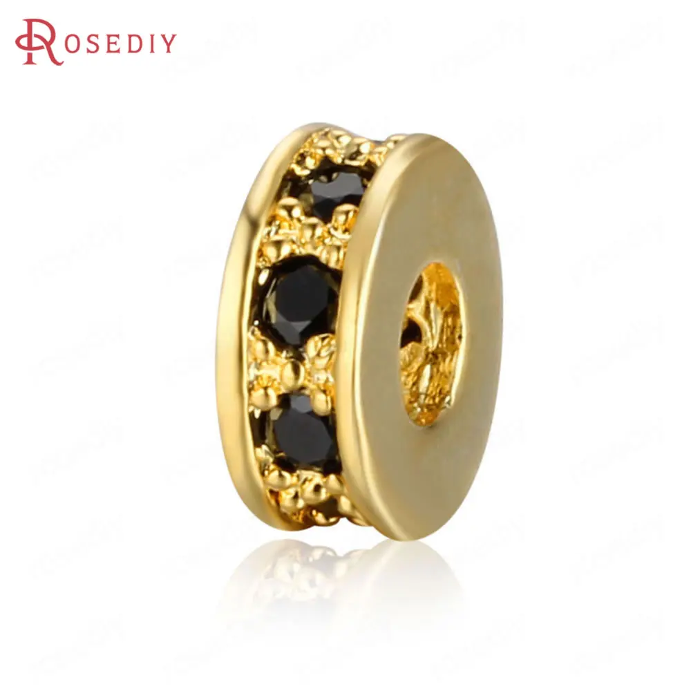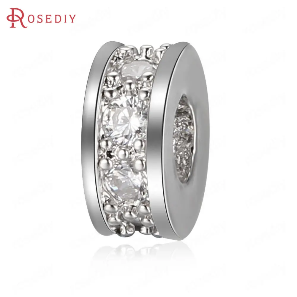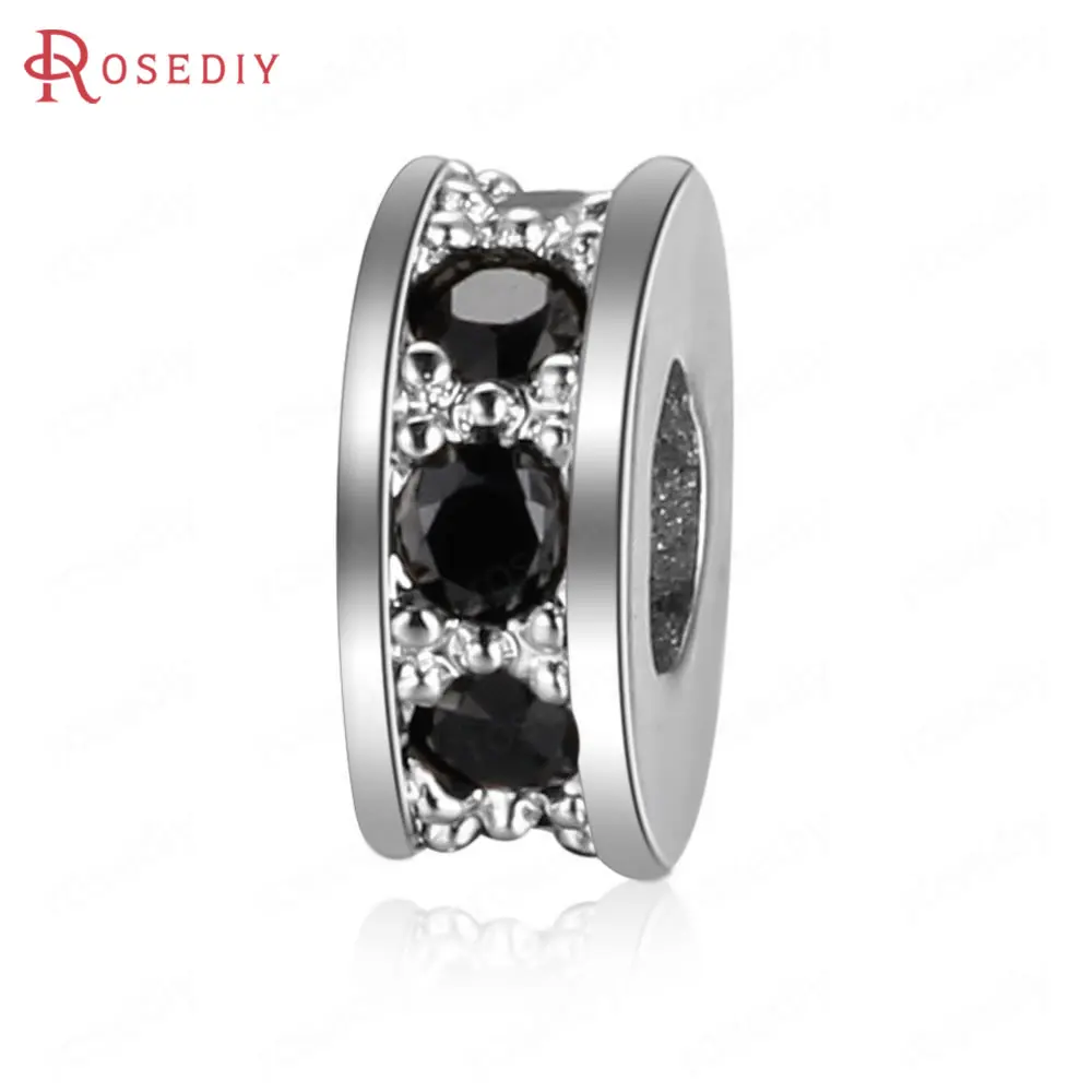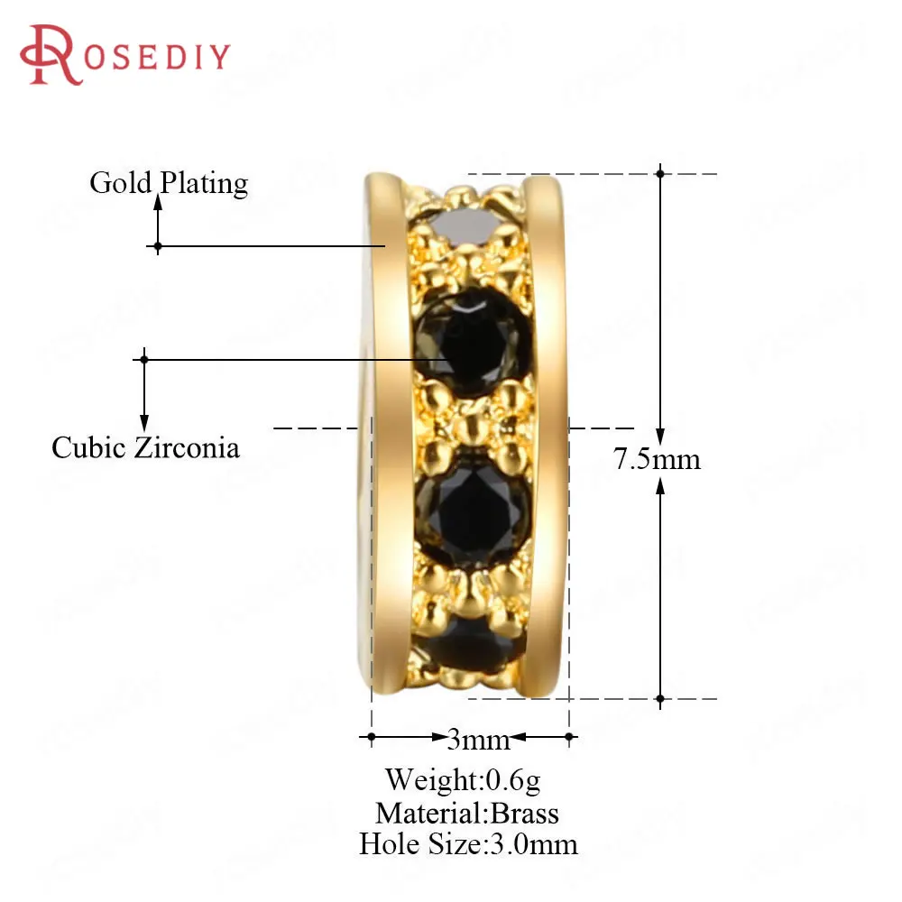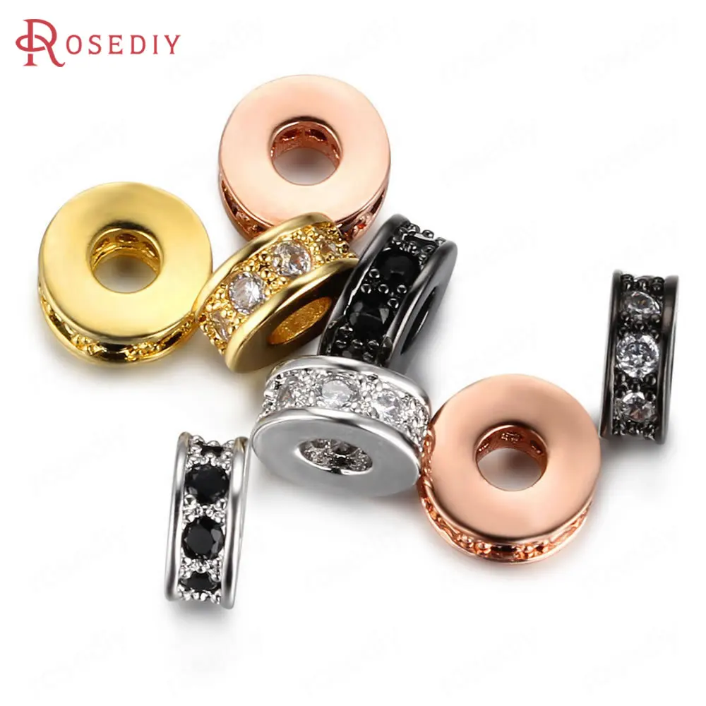 (37335)6 шт. 3x7,5 мм латунные и циркониевые круглые бусины с отверстием для браслетов принадлежности для изготовления ювелирных изделий Diy фурнитура Аксессуары