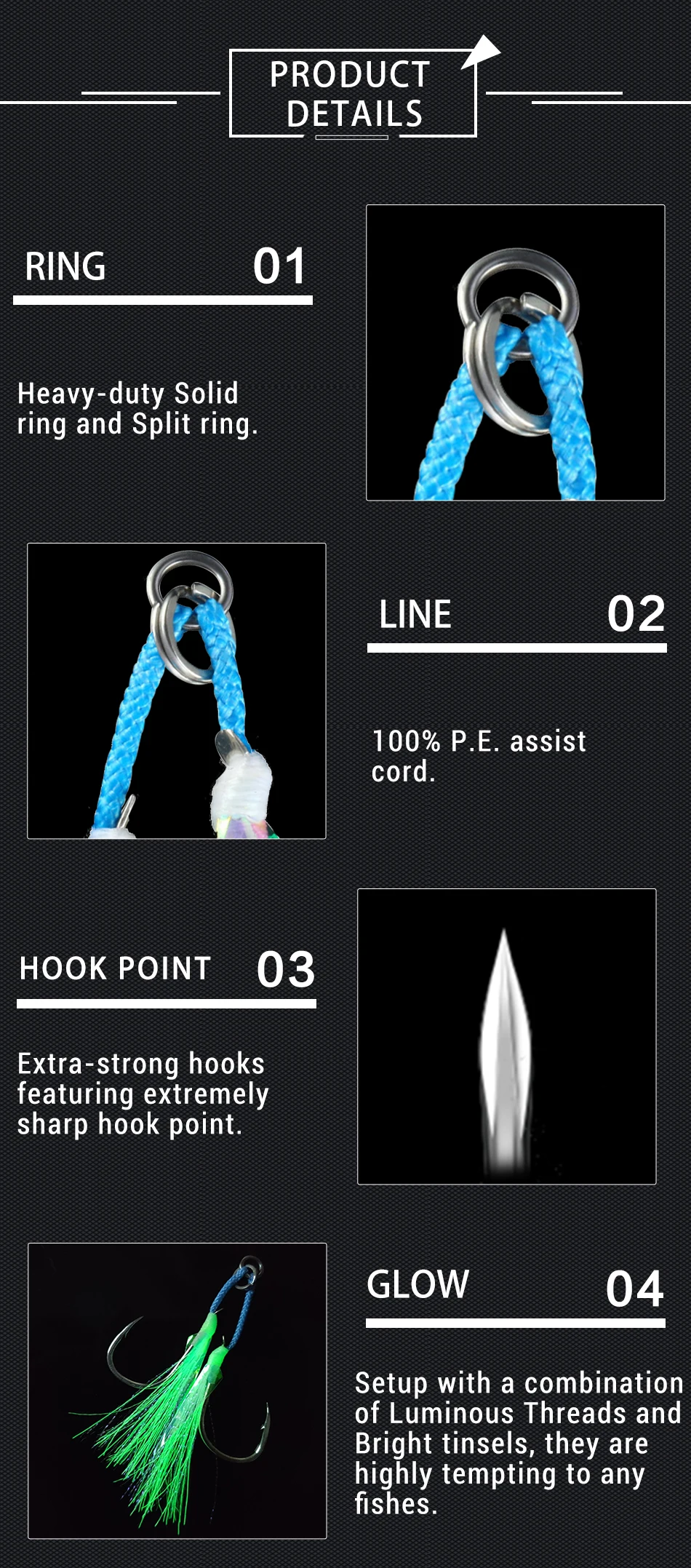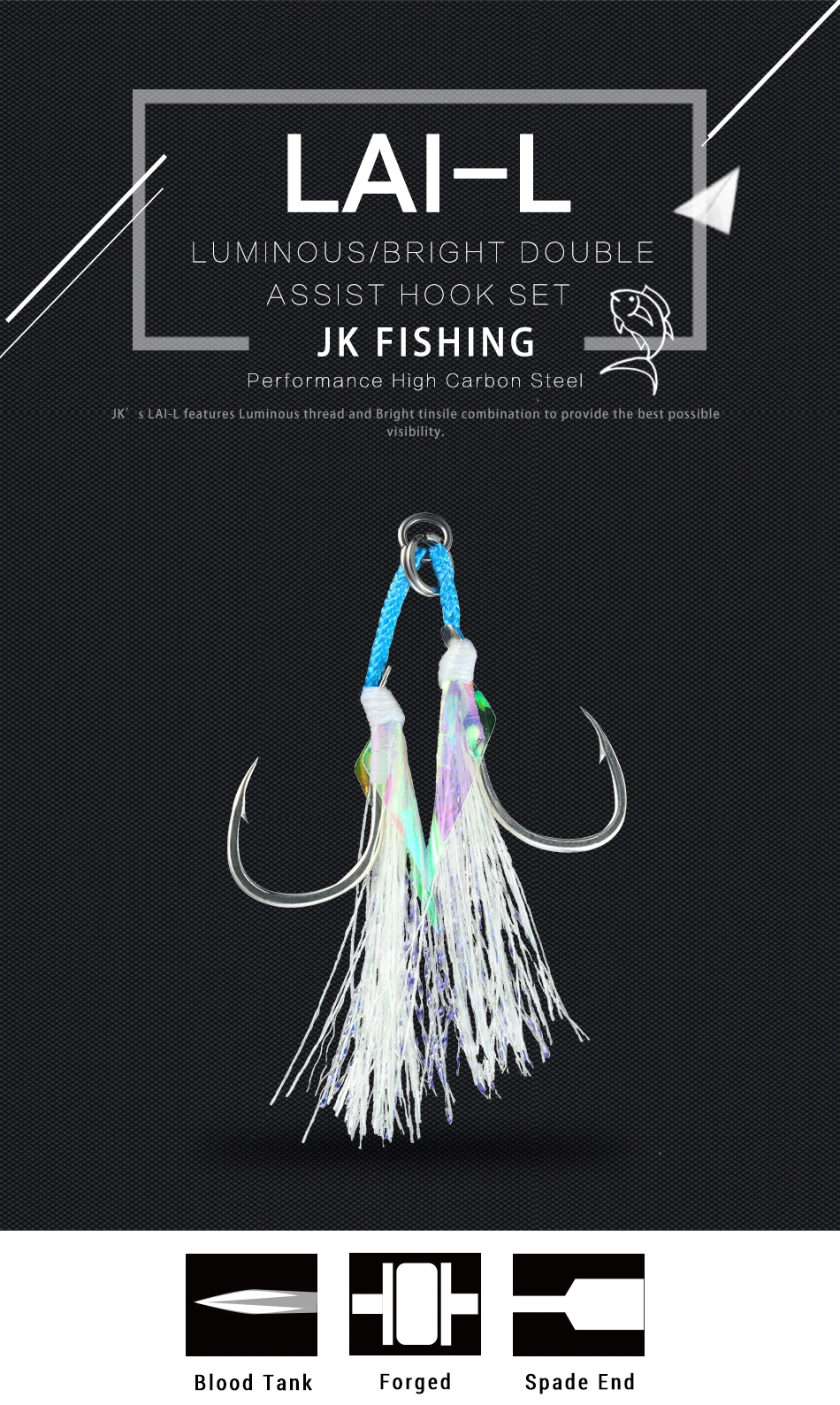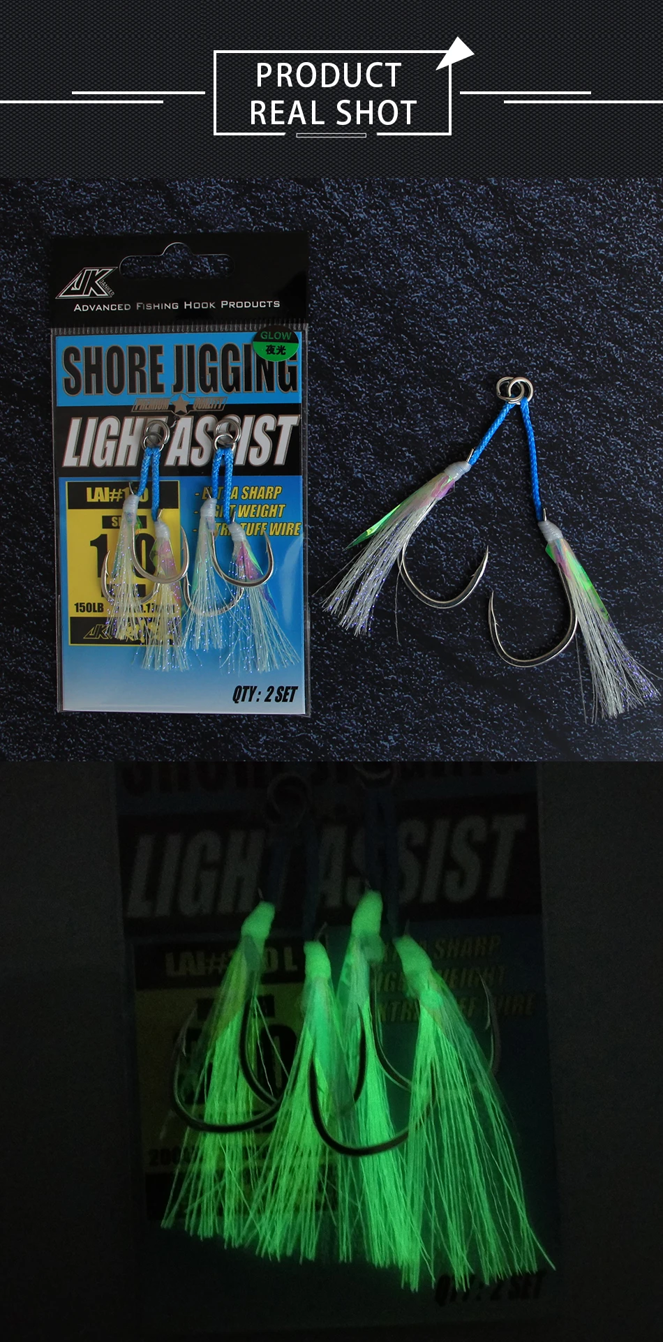 JK LAI-L приспособление для джиггинга по берегу светильник легкий крючок с Т-образной канавкой, Нержавеющее твердое кольцо, светящийся двойной рыболовный крючок, крючки для морского леща