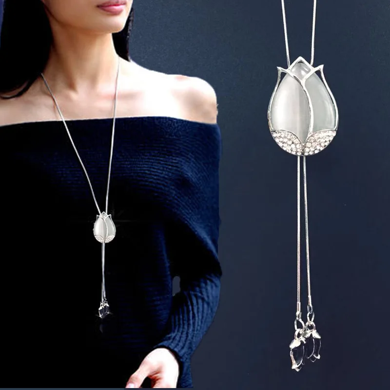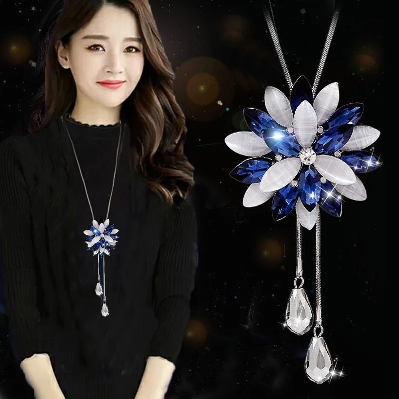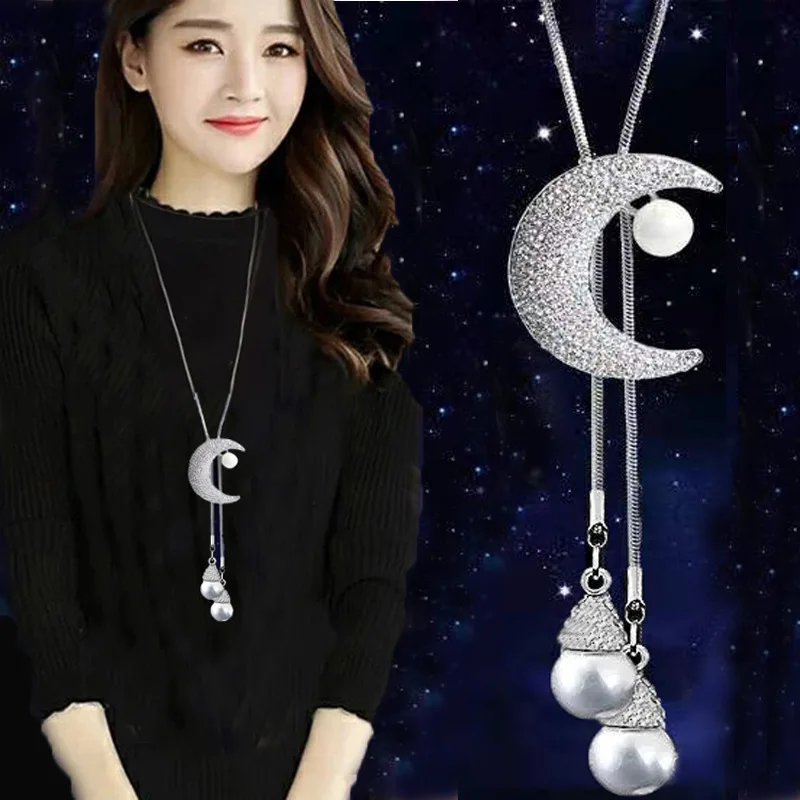 Корейский кулон в виде Луны, цветка, бабочки, ожерелье для женщин, цепочка на свитер, ожерелья с хрустальным круглым жемчугом и звездами, модные ювелирные изделия
