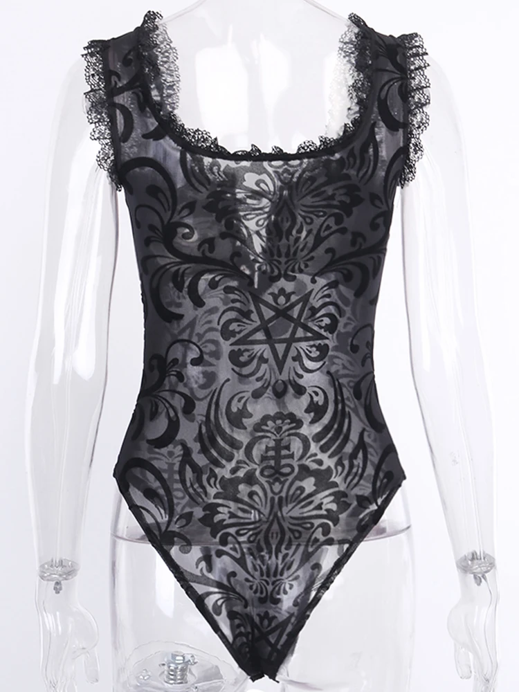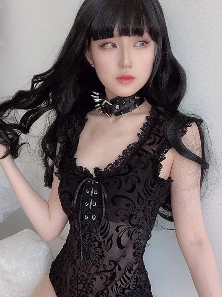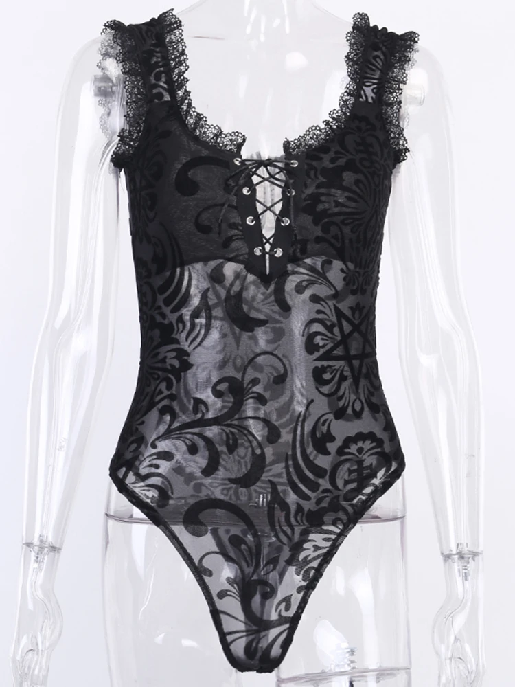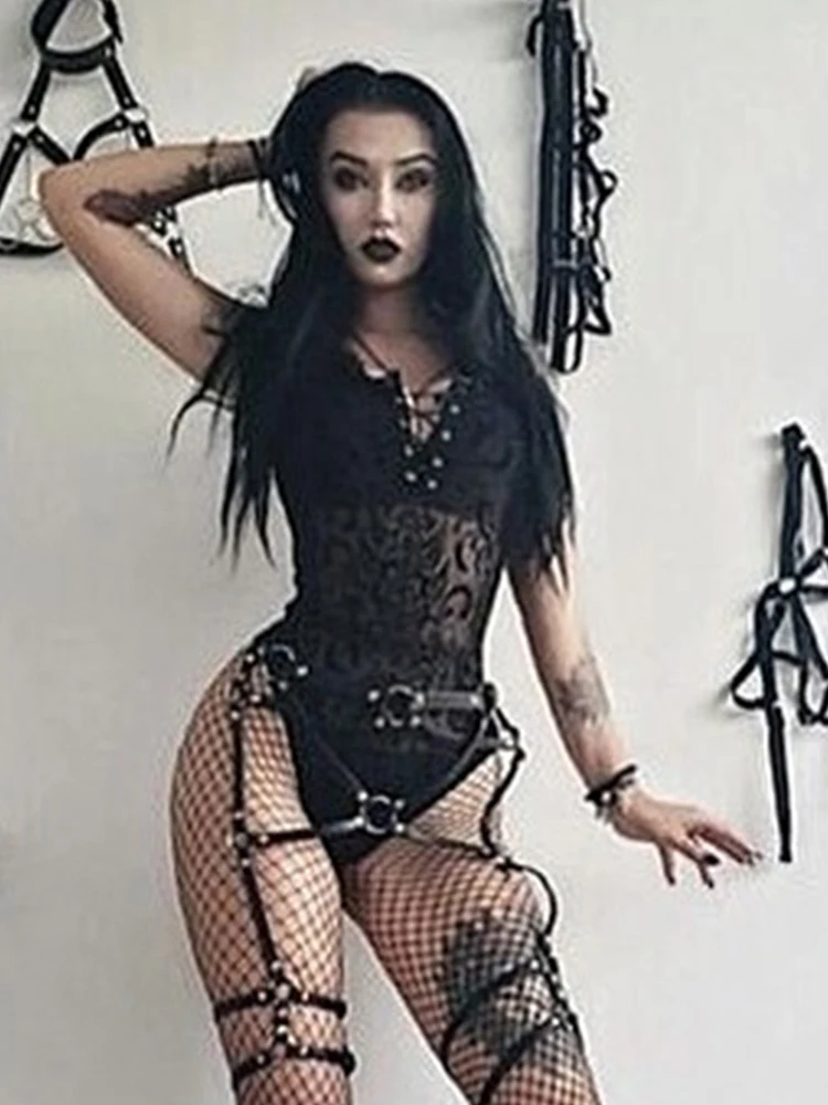 Женский комбидресс InstaHot, черный облегающий комбидресс без рукавов, в готическом стиле, на шнуровке, с сеткой, летний комбидресс