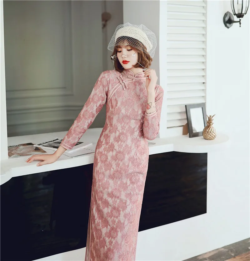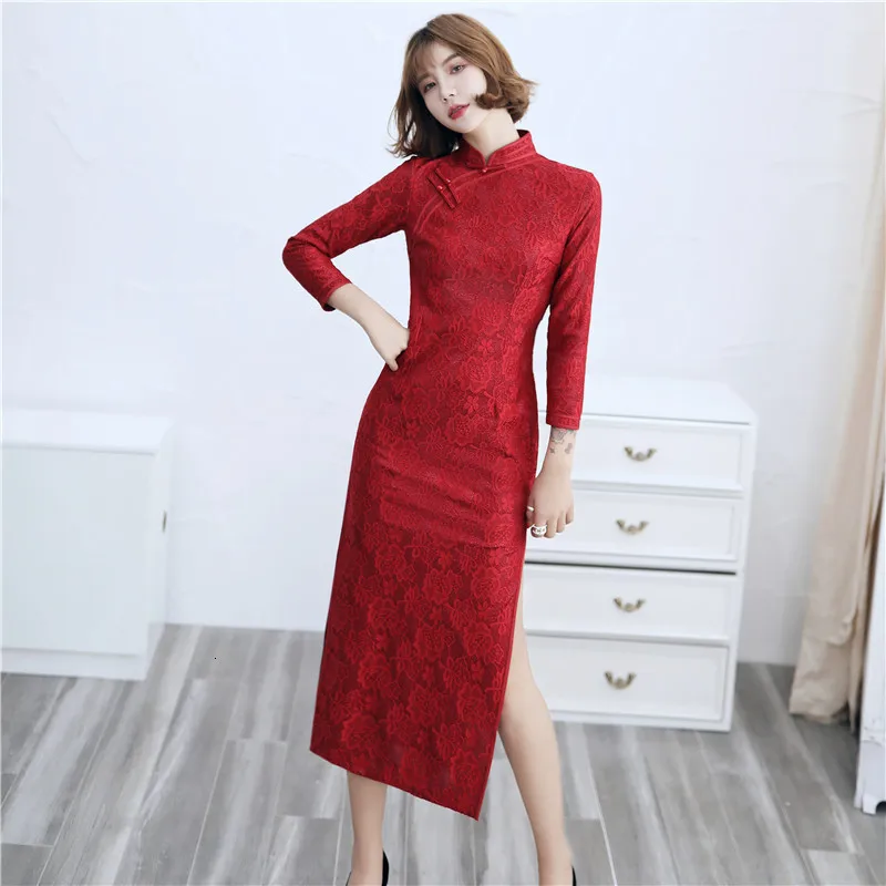 Женское кружевное платье-Ципао Sheng Coco, пикантное длинное платье...
