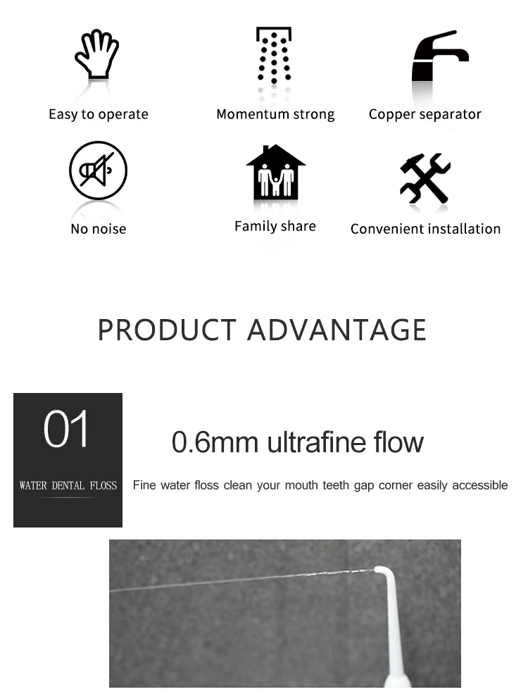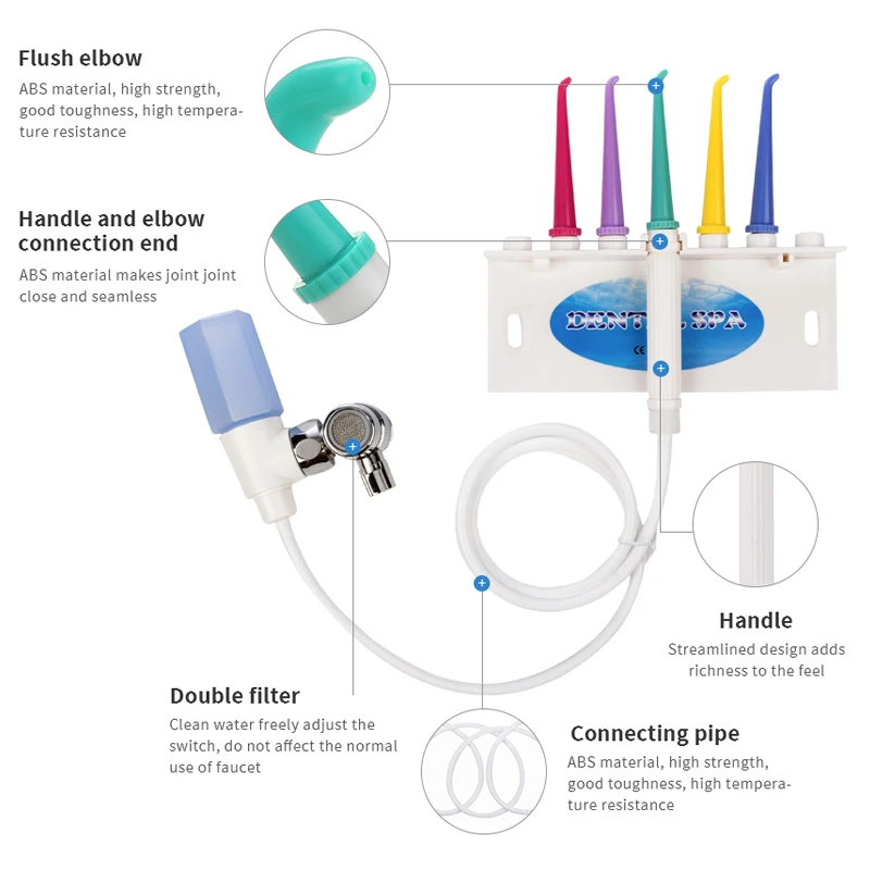 Без электричества, без шума, не нужно добавлять воду, силу удара можно регулировать.Используйте принцип давления водопроводной воды, чтобы смыть мертвый угол рта.Предотвращает образование зубного налета и зубного камня.Портативный Флоссер для воды, подходит для домашнего использования, напрямую подключается к крану.Изготовлен из абс + ПВХ, прочный и поставляется с полными аксессуарами для удобной установки.Спецификация:Состояние на 100% абсолютно новыйМатериал: АБС + ПВХ