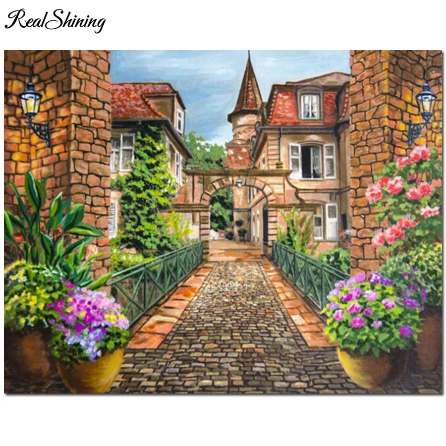 Diy алмазная живопись 5D цветы пейзаж полная квадратная дрель круглая Алмазная вышивка европейский город галерея картина FS7216