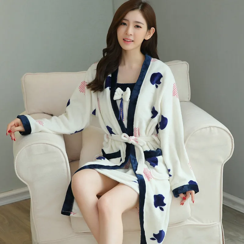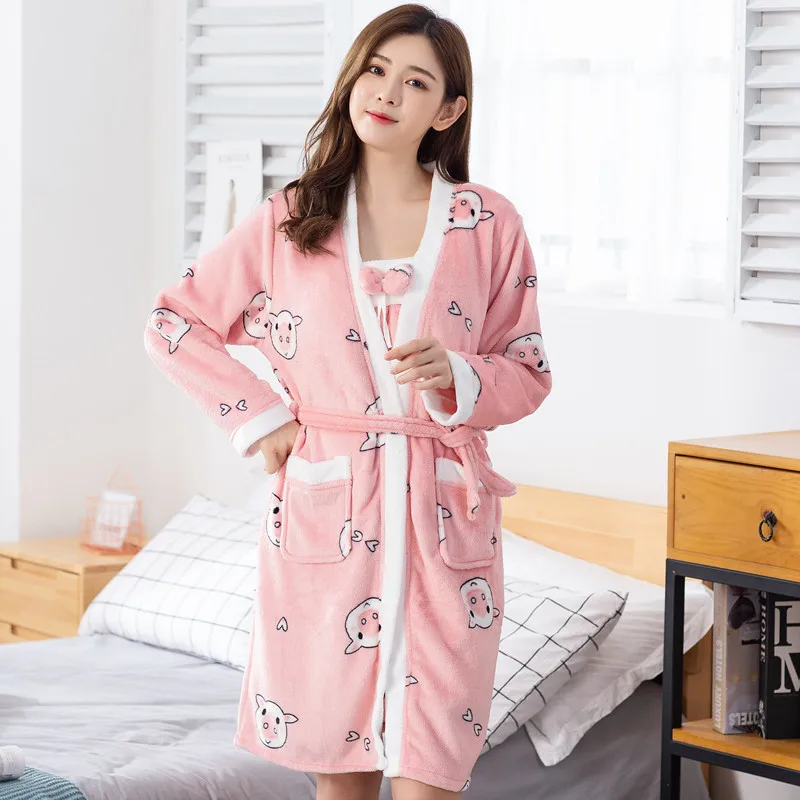 Ночная Рубашка Фланелевая, зимняя, теплая, с поясом, 2 шт.