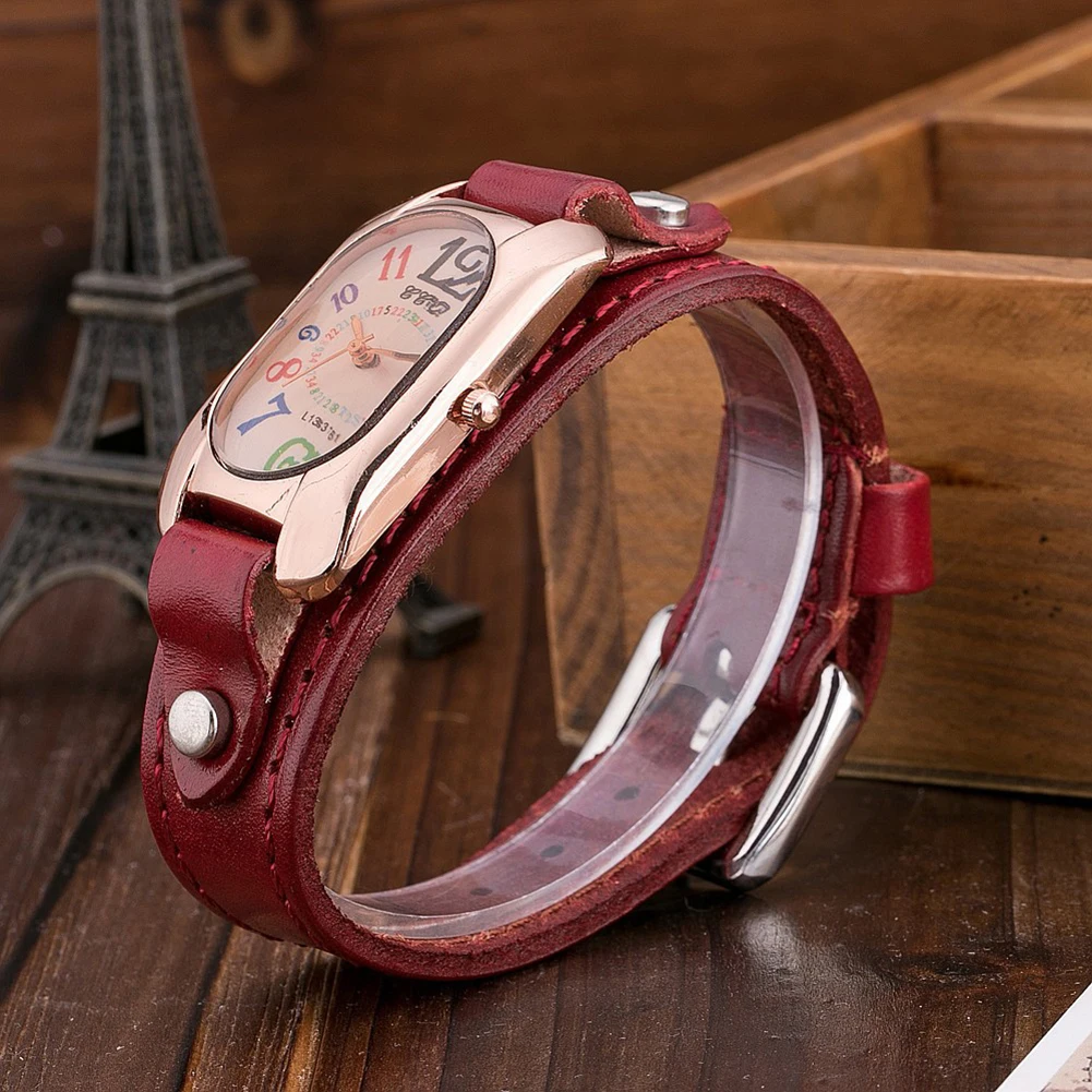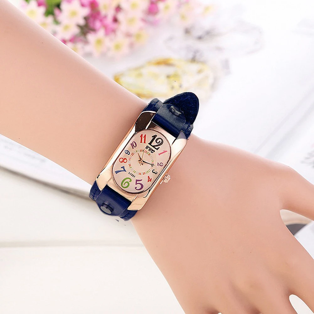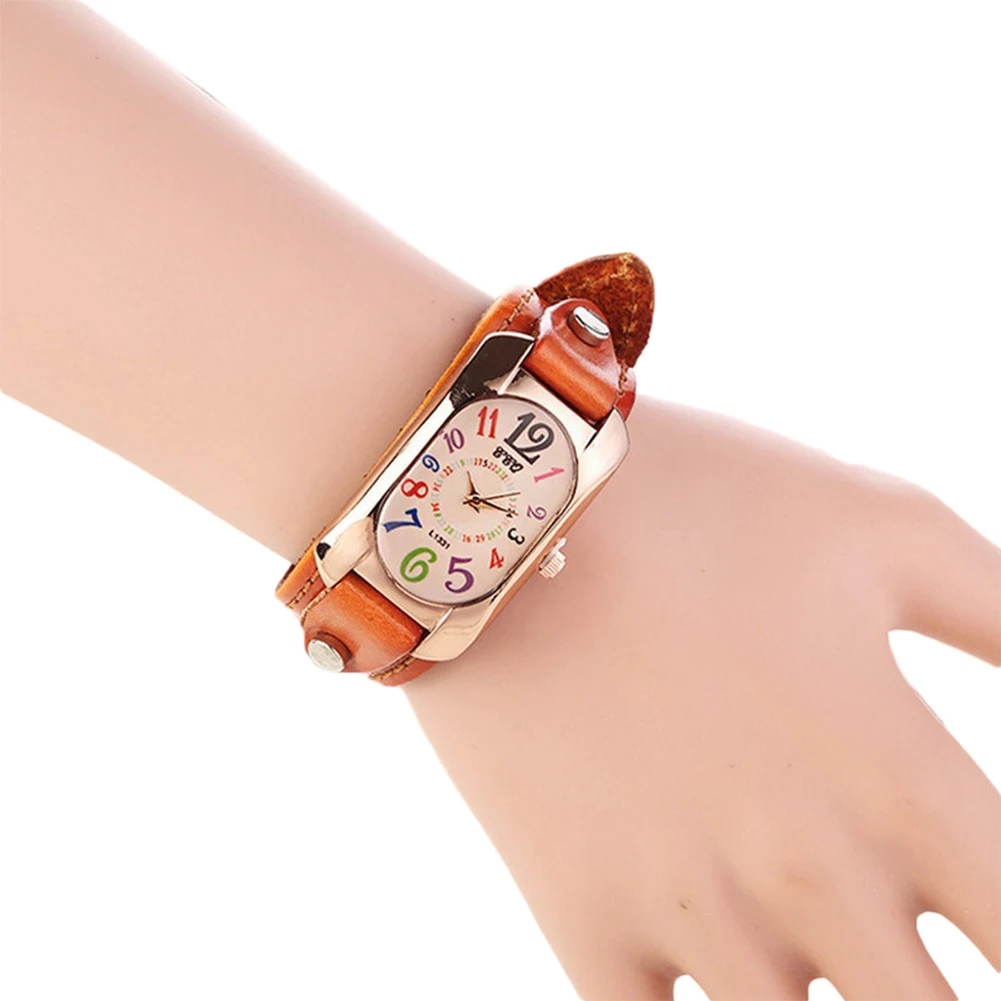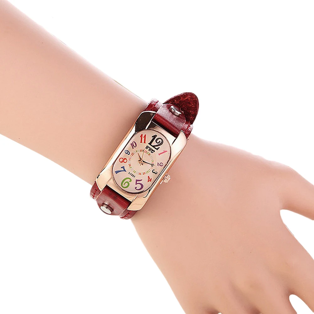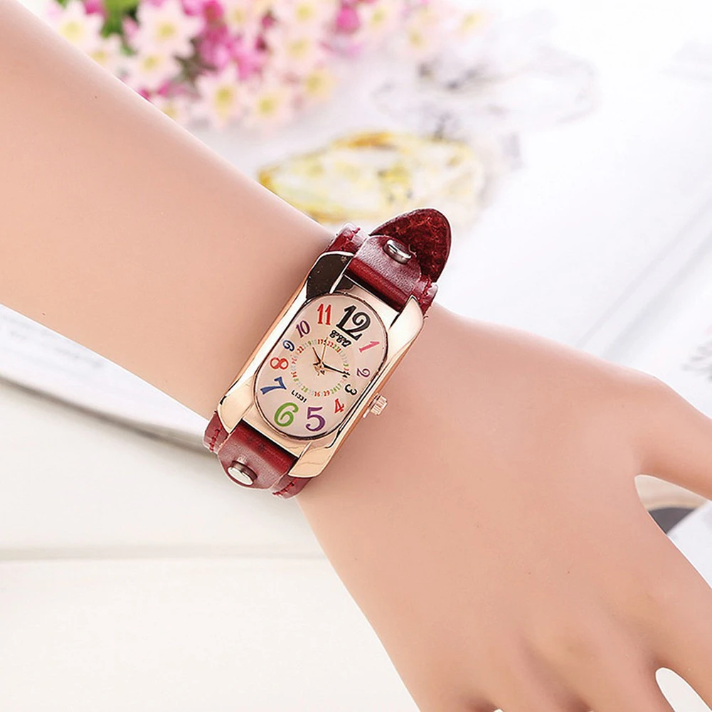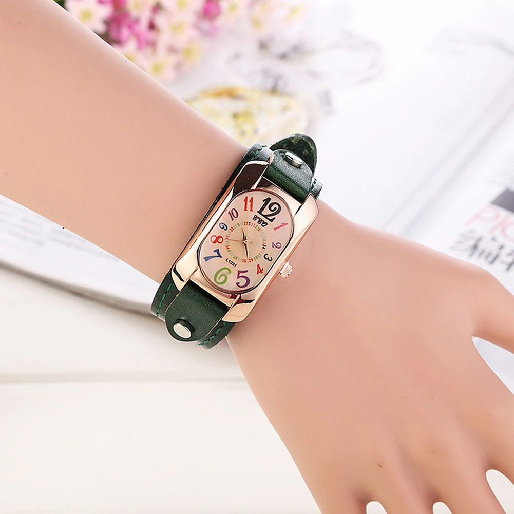 Часы наручные женские кварцевые, винтажные аналоговые, с многоцветными шкалами времени, прямоугольной формы, из искусственной кожи, Watc