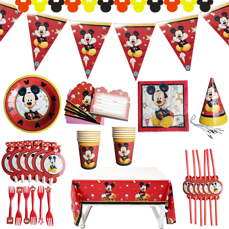 Микки Маус тема посуда детские, для малышей на день рождения украшения, товары для вечеринки для маленьких мальчиков семейный добрый друг одноразовая посуда партия