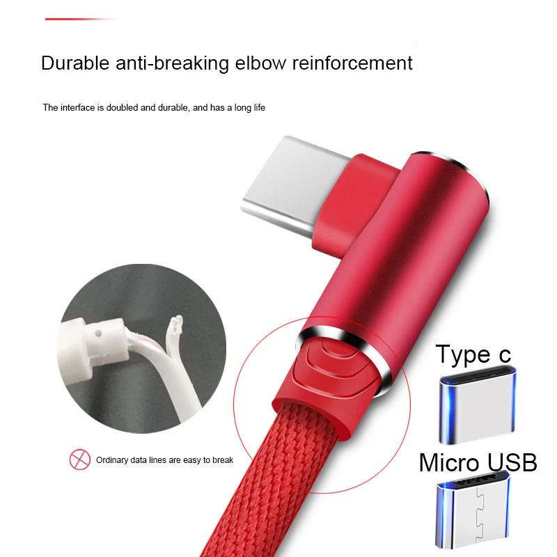 Кабель usb-c, Micro USB, для Samsung, Xiaomi 9, Redmi Note 4, 5, 7, 8, k20 pro, кабель для быстрой зарядки, 90 градусов