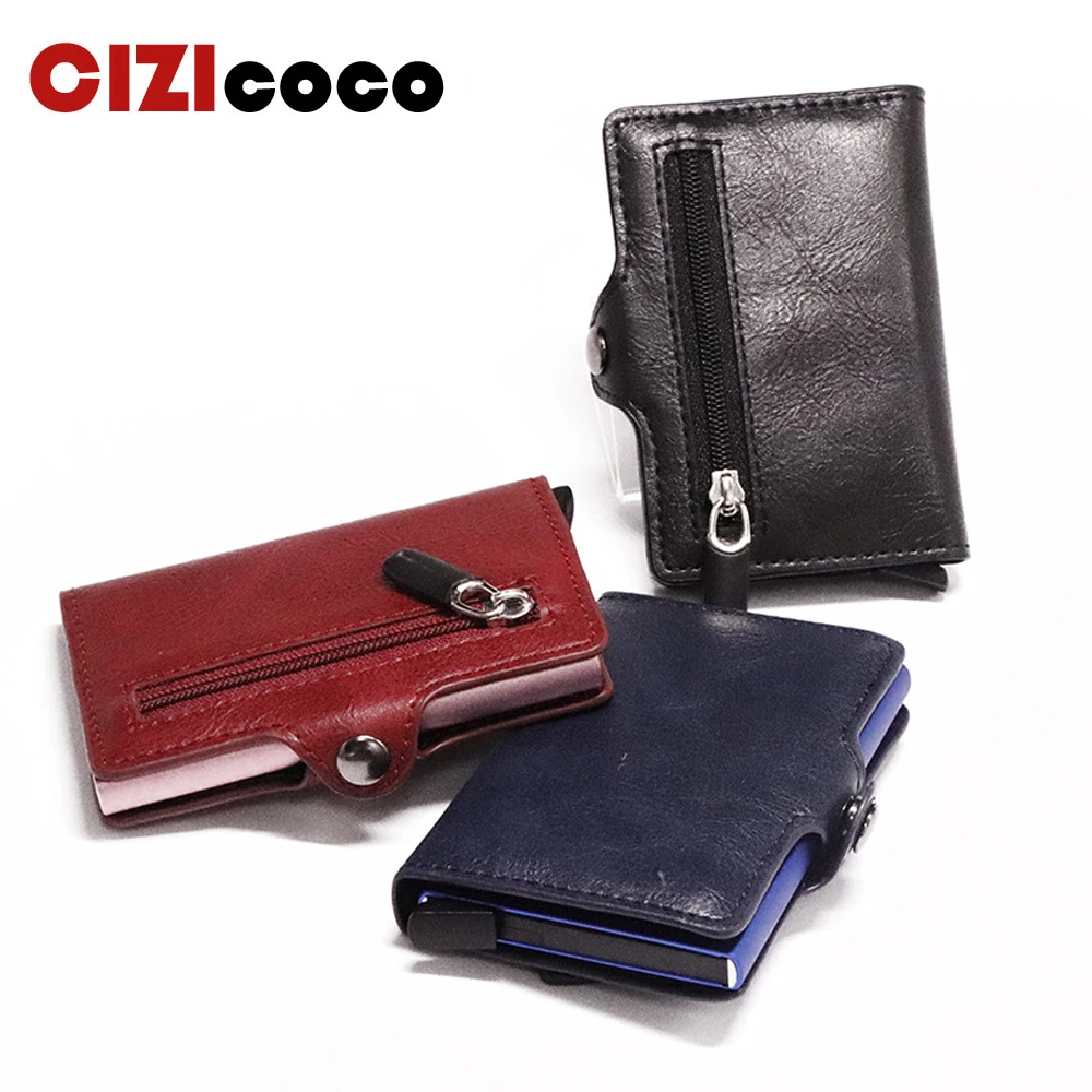 Держатель для кредитных карт Cizicoco с RFID-защитой, тонкий держатель для ID-карт, автоматическая прочная металлическая искусственная мини-кредитка унисекс