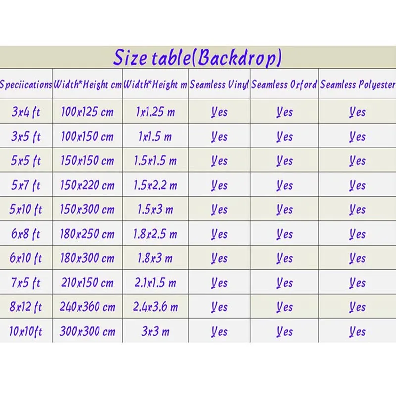 У нас также есть фон 10X10ft,8X10ft,7X10ft, 20x10ft,10X15ft для этого элемента, если у вас есть особые потребности в размерах, любой из наших фонов может быть заказан по индивидуальному размеру. Пожалуйста, свяжитесь с нами.