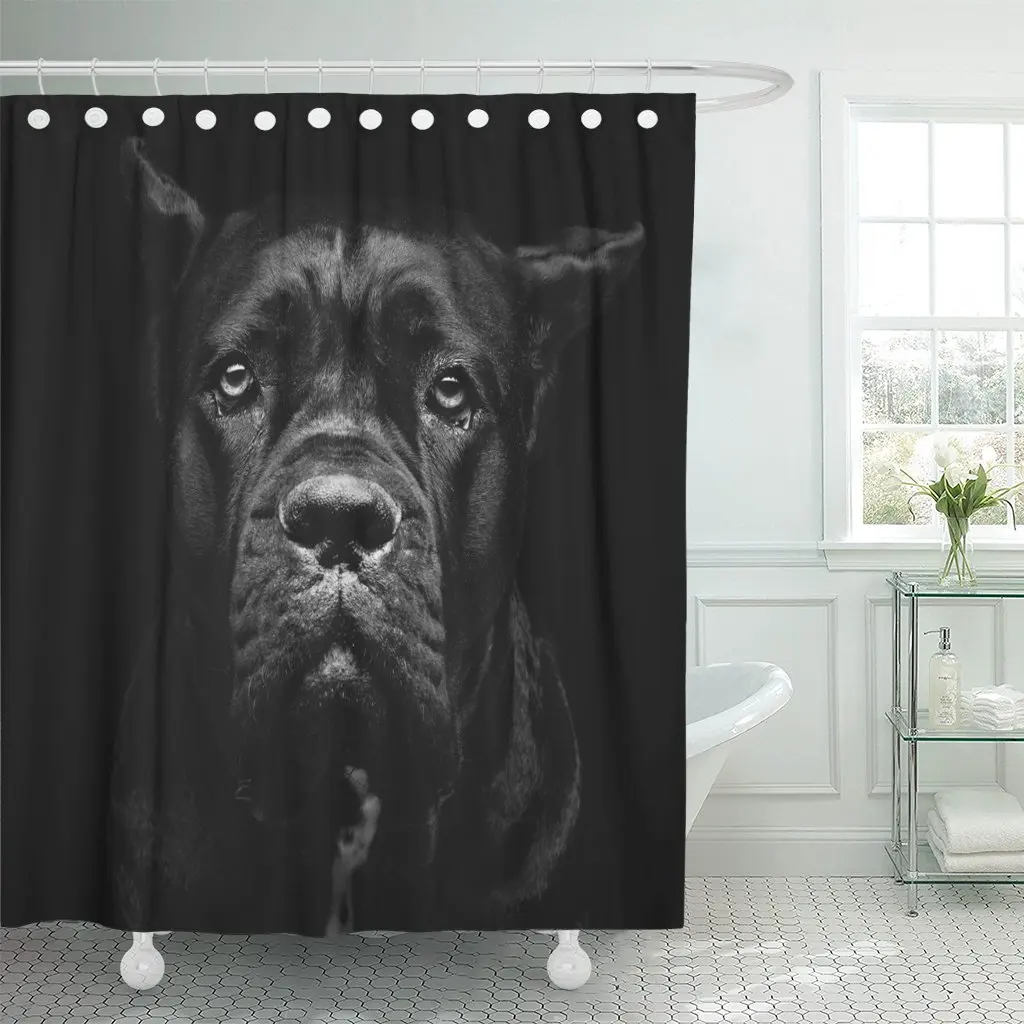 Крупный план портрет красивой черной Кане Корсо Женская собака душ занавеска полиэстер 60x72 дюймов комплект с крючками