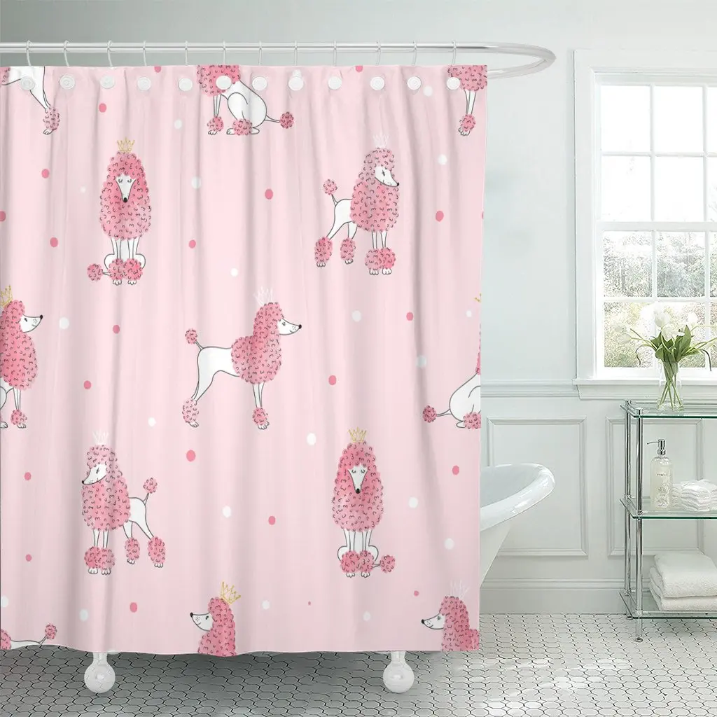 Милая занавеска для душа с рисунком животного, пуделя, собаки, розового цвета, из полиэстера, 60x72 дюймов, с крючками
