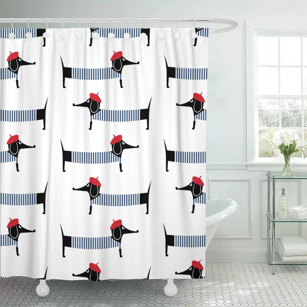 Французская собака, милая мультяшная Парижская такса, Детский рисунок, щенок с красным беретом и полосатым душевой занавеской из полиэстера 72