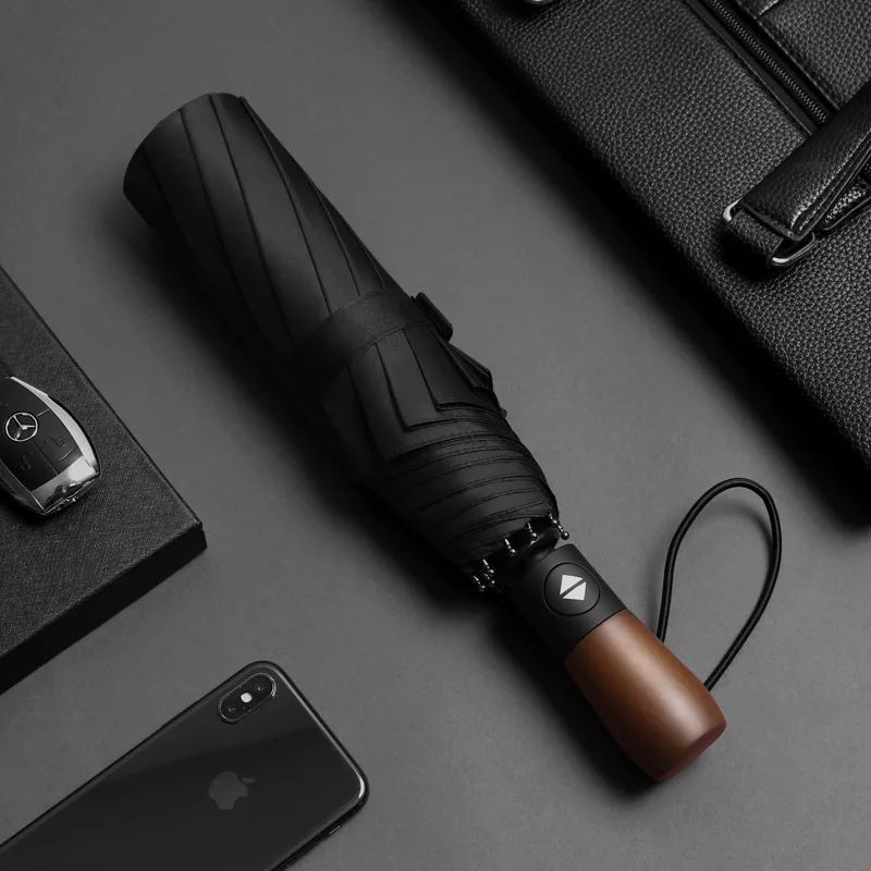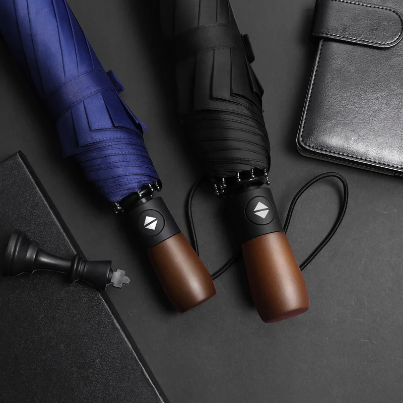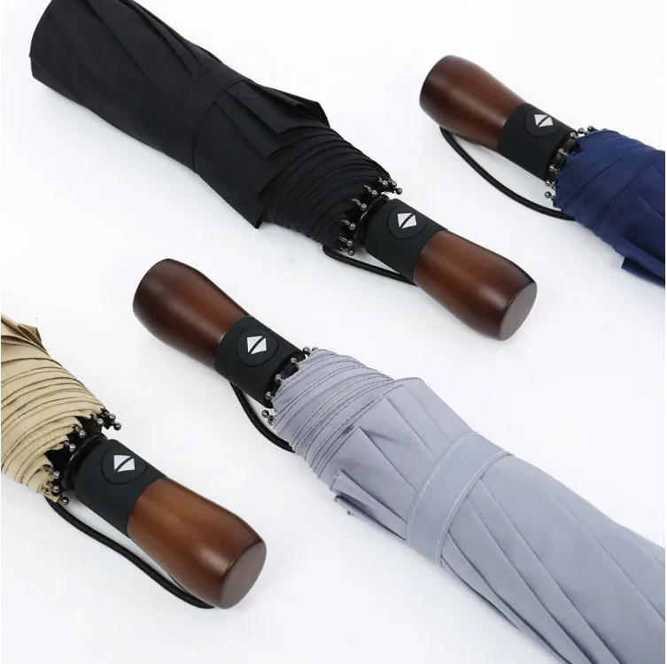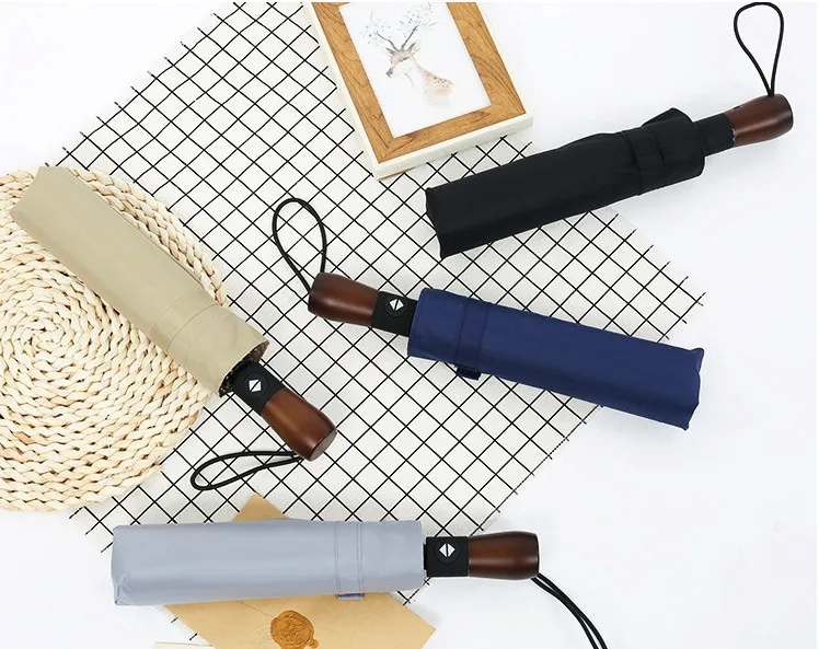 Ветрозащитный автоматический складной зонт с деревянной ручкой, 10 ...