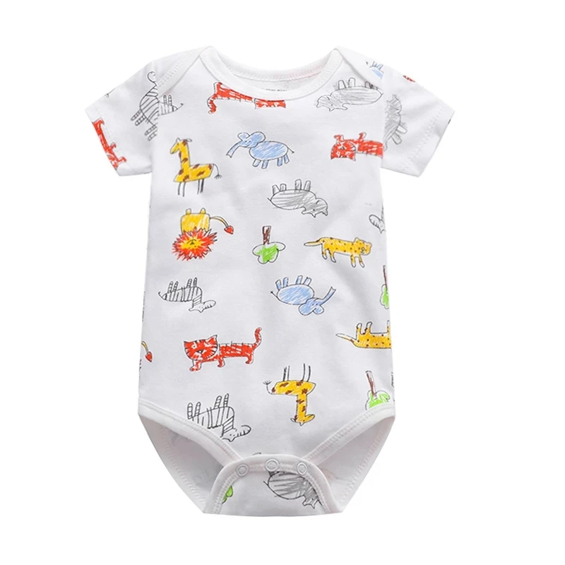 Новые детские комбинезоны из 100% хлопка, одежда с коротким рукавом для младенцев, Детский комбинезон с мультяшным принтом, одежда для маленьких мальчиков и девочек 0-24 месяцев