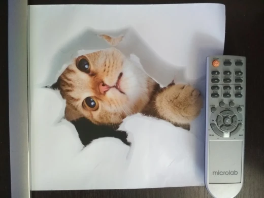 забавно получилось и в итоге мне нравится, однако клейкая сторона такая крепкая, что от бумаги картинку отделить получилось не сразу и клочками, но в итоге все получилось. радует. спасибо продавцу, доставка очень быстрая и упаковка на ролике, т.ч. загибов нет.