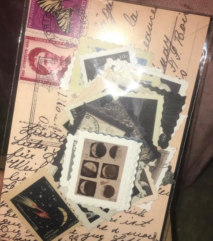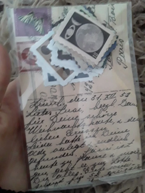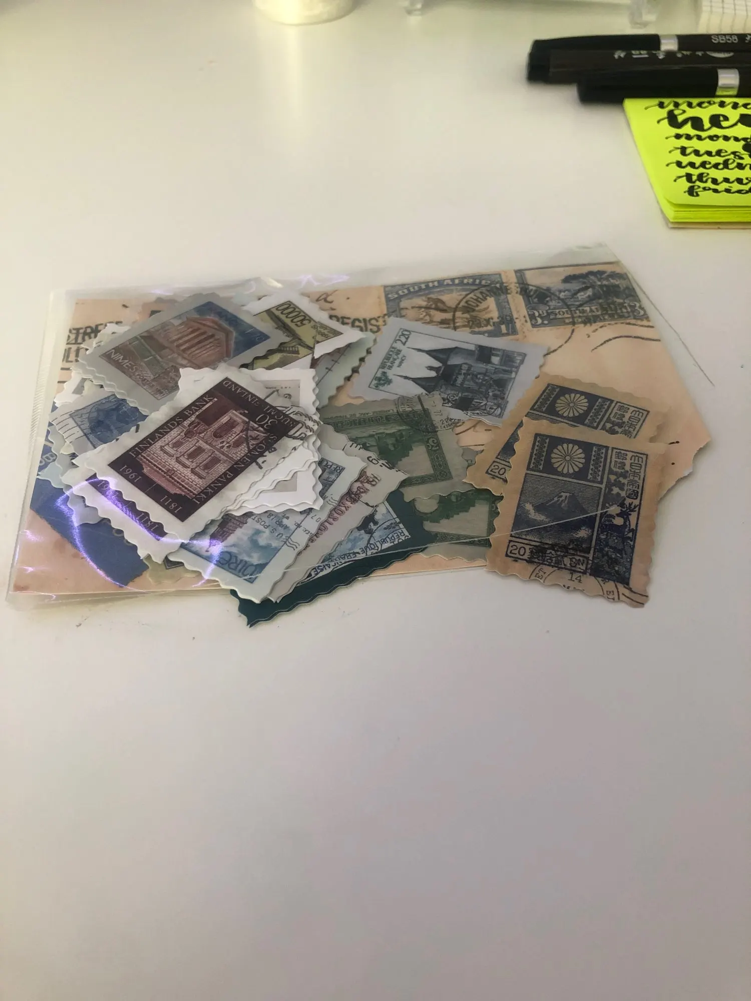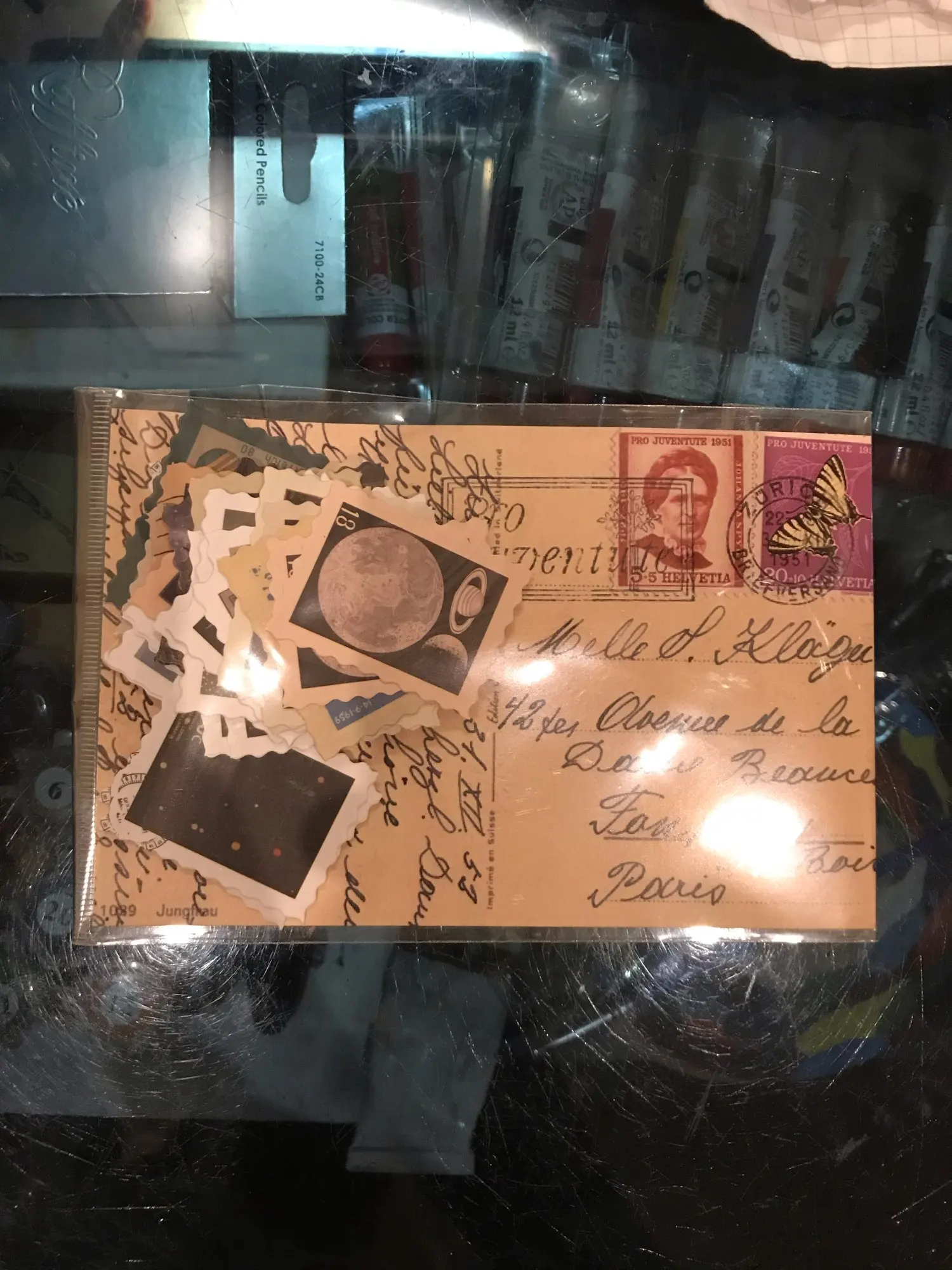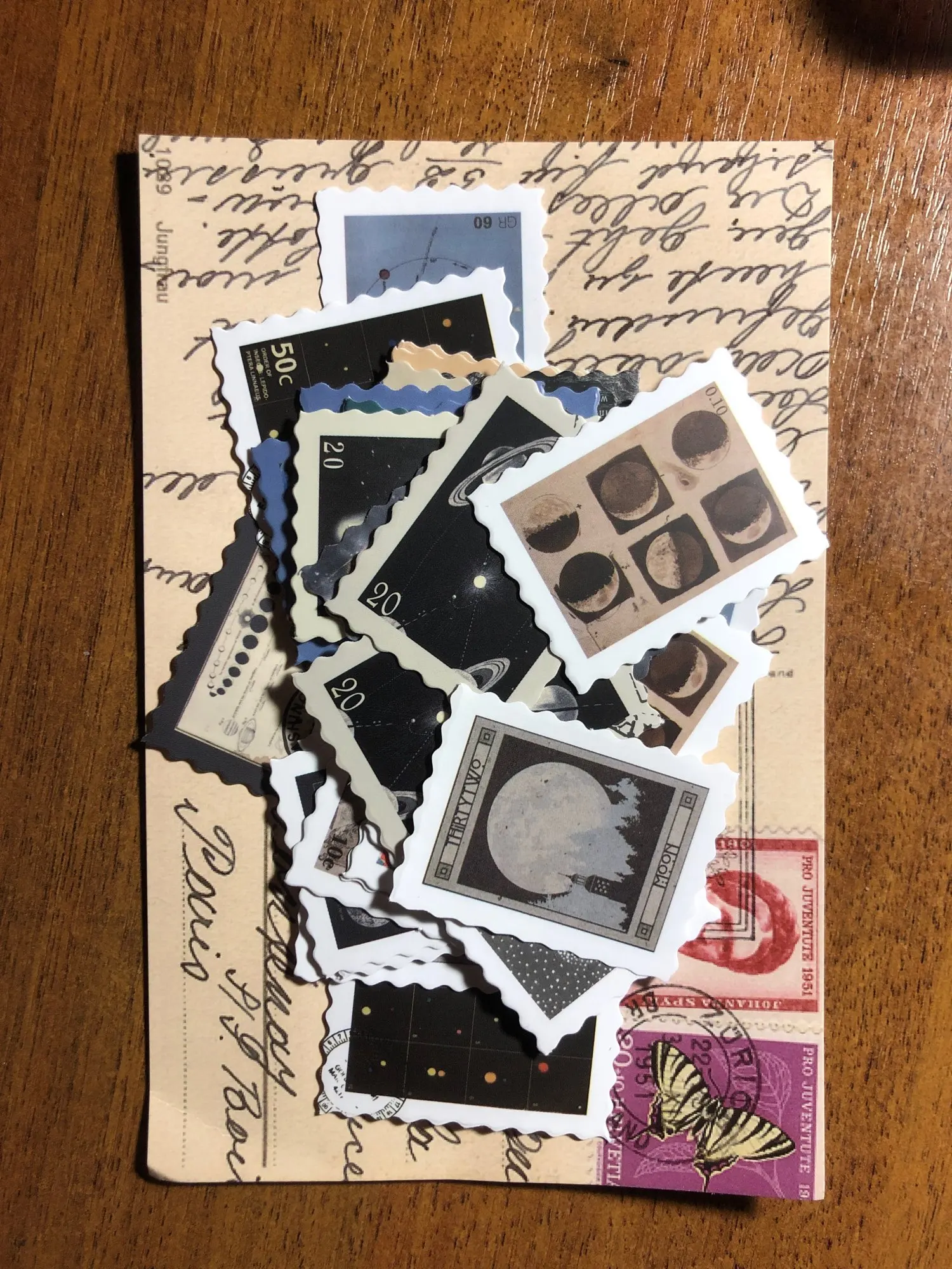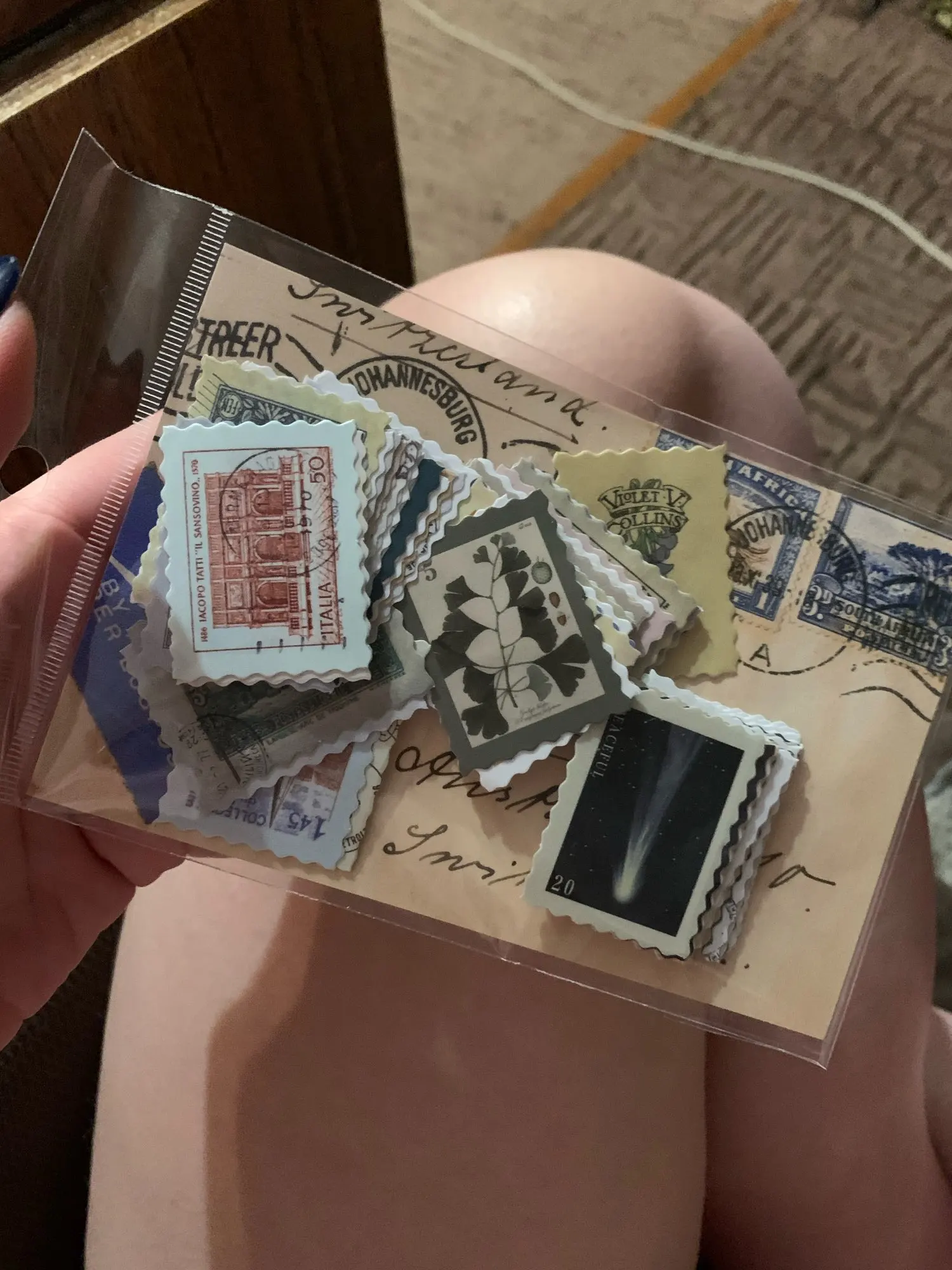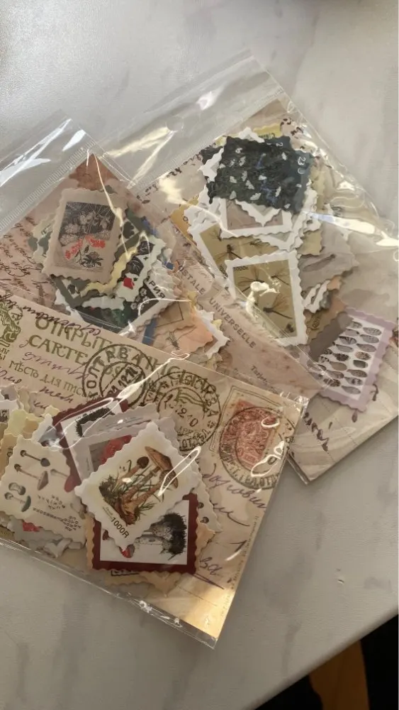 пришли с милой винтажной открыточкой в виде почтовой карточки сами наклейки uwu