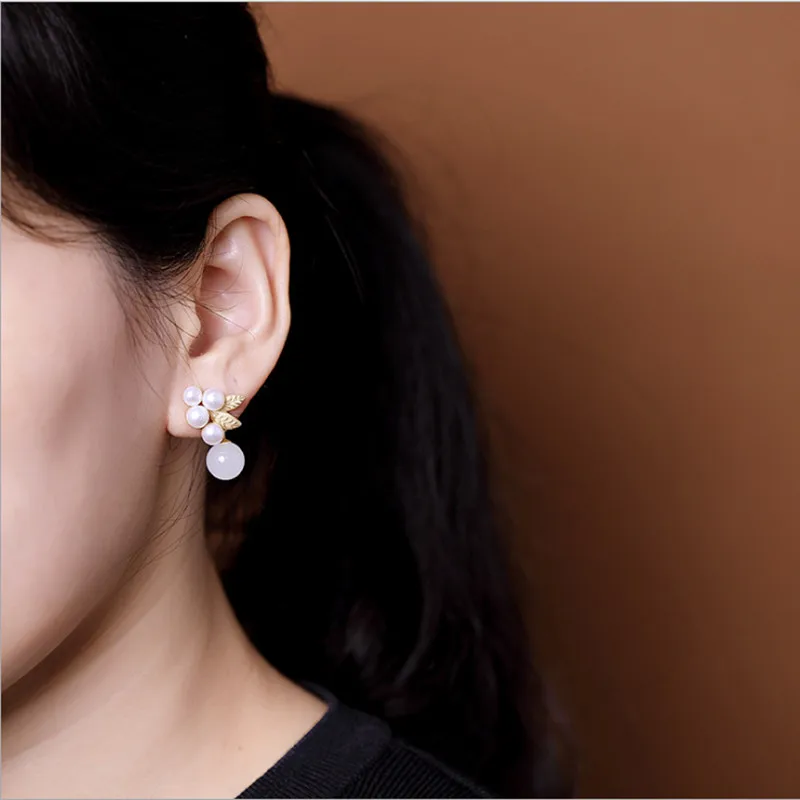 Серьги женские в форме цветка из натурального нефрита, E1853