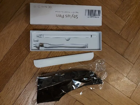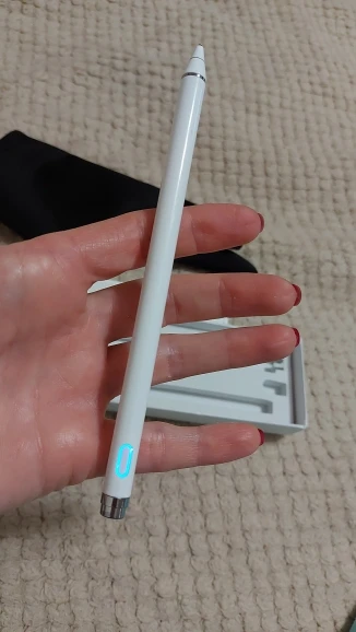 Очень хороший и качественный стилус. Рисует и пишет на экране хорошо. Если у вас гелевая пленка на экране то оставит вмятины. Есть чехол, перчатка, зарядка. Пришёл быстро с чёрной пятницы и был уже заряжен :)