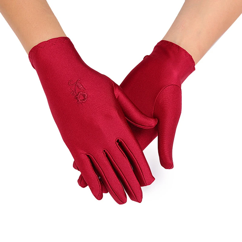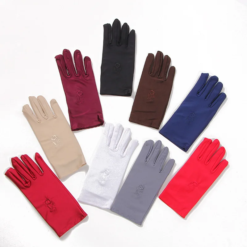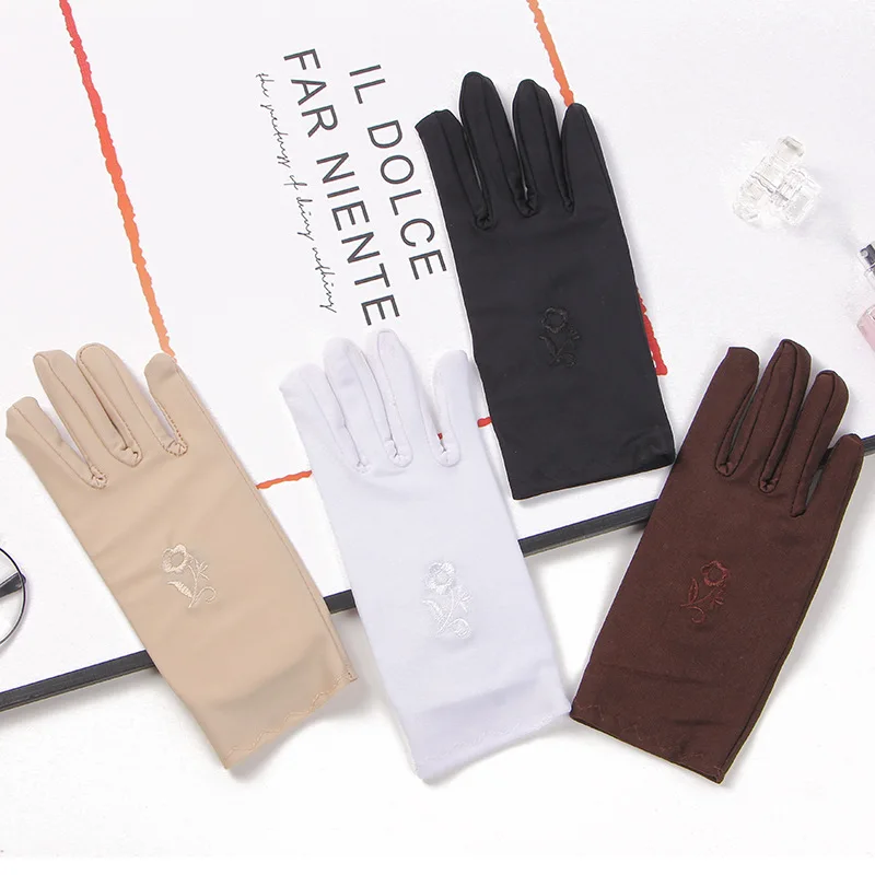 Перчатки женские с цветочной вышивкой, короткие официантки для выступлений, разноцветные варежки, аксессуар для одежды