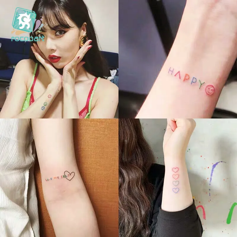 Rocooart красочные маленькие татуировки Радуга поддельные татуировк...