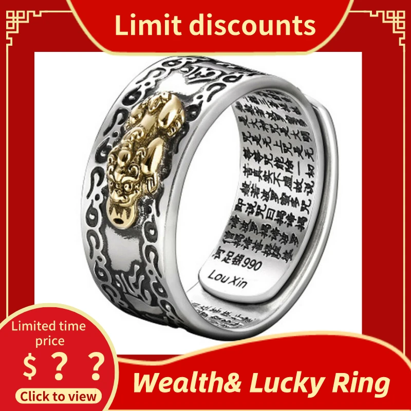 Мужское кольцо Pixiu, амулет фэн-шуй, регулируемые кольца, буддийск...