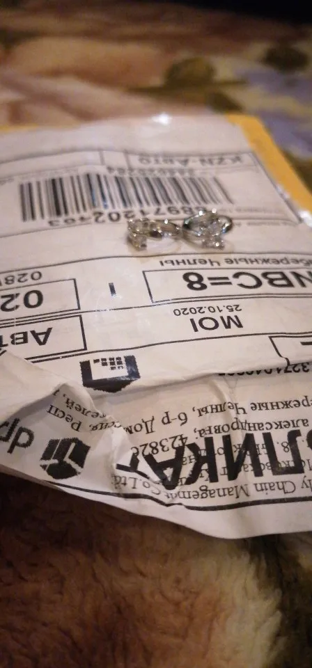 Посылка пришла быстро , очень удобно что продавец положил два заказа вместе . Серьги в жизни кончено маленькие, но все равно в ушке смотрятся красиво . Застежки работают , выглядит как серебро , стоит проба .