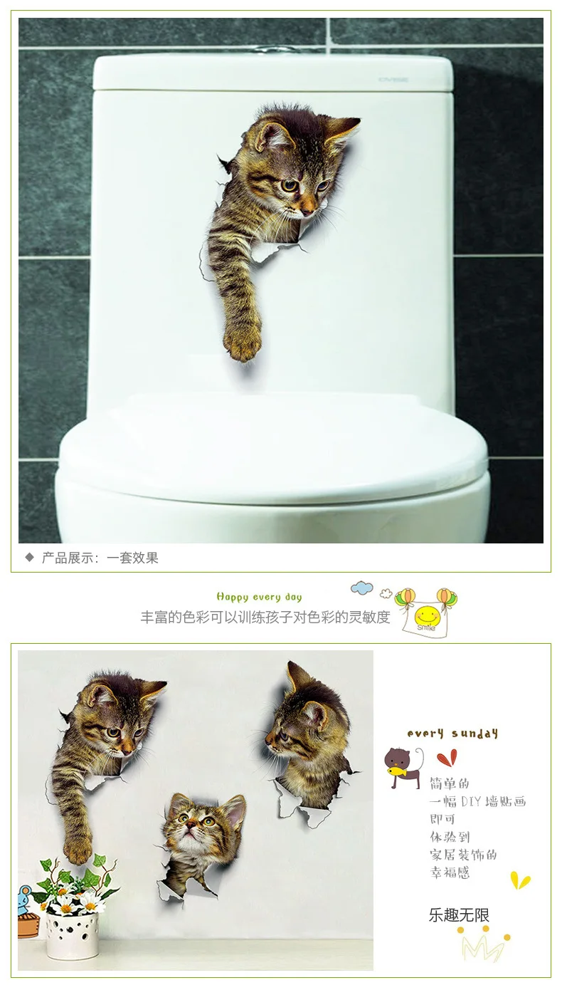 Милые 3D наклейки на стену с изображением кота, для ванной, туалета...