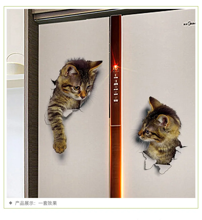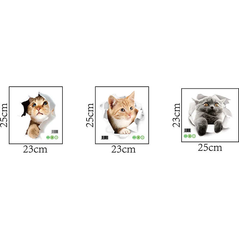кошек 3D наклейки на стену Туалет Наклейки отверстие просмотра ярки...