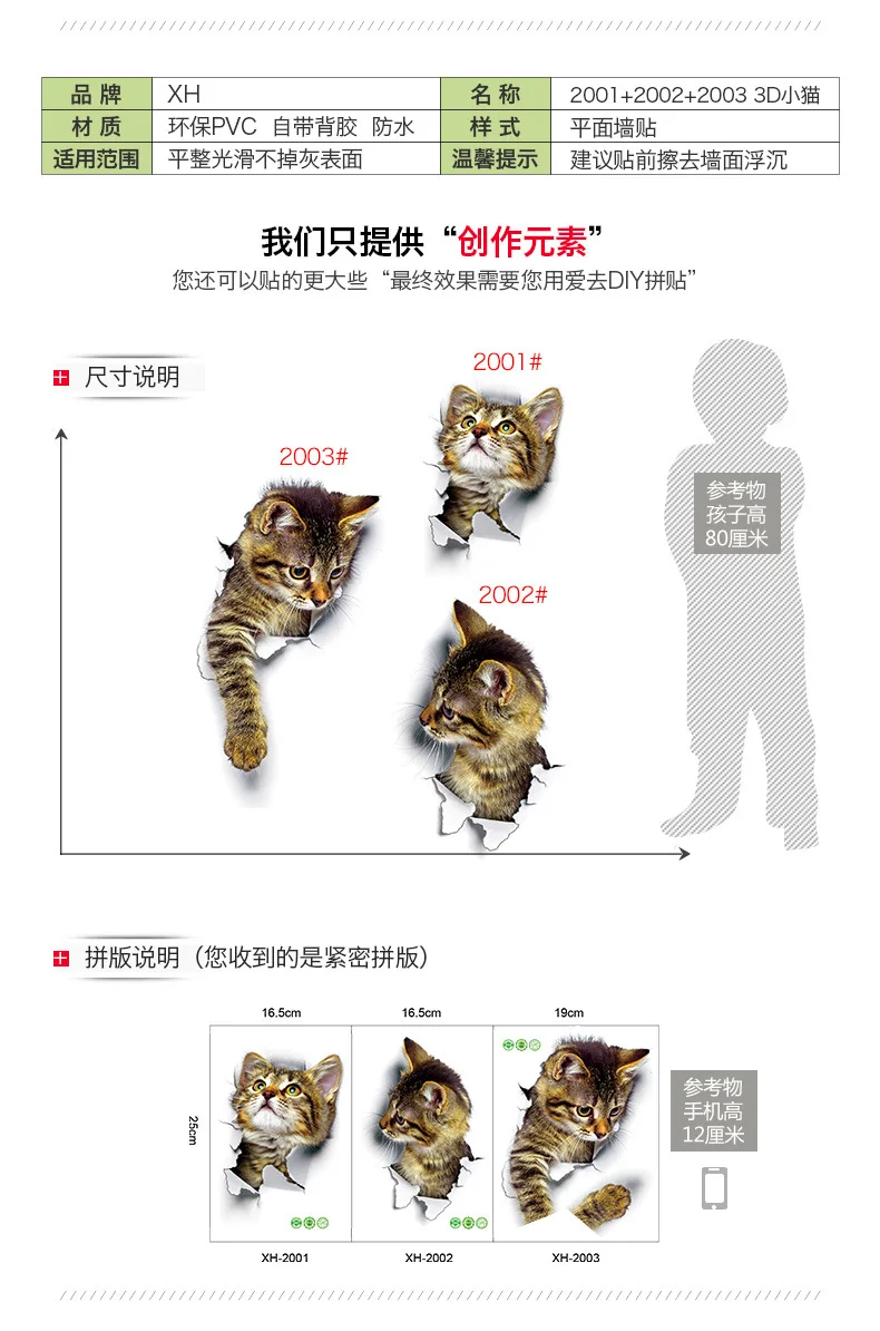 3D Наклейка на стену с изображением кошки, водонепроницаемый домашн...