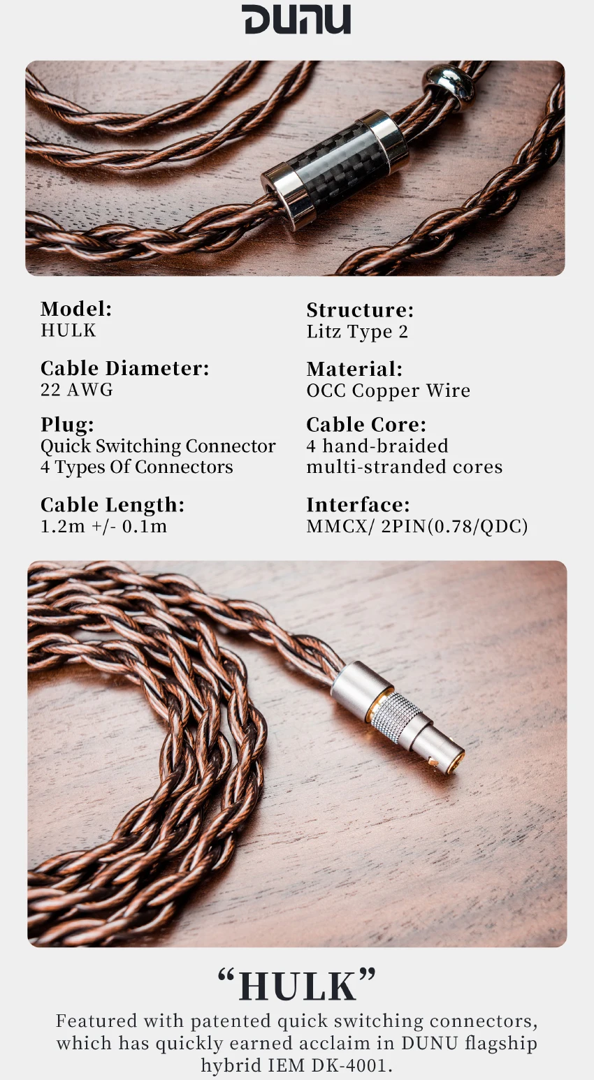 Кабель DUNU HULK для наушников Hi-Fi, IME, съемный MMCX, 2 контакта, 0,78 ммQDC, штекер с 4 разъемами 3,52,54,4 Proмм