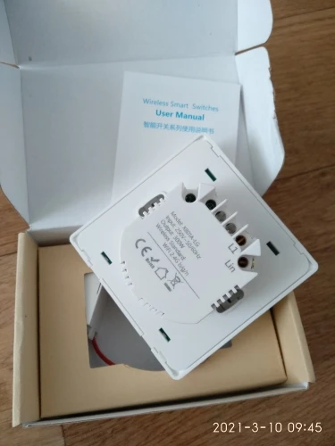 Выключатель пришёл быстро. Выглядит хорошо, в комплекте конденсатор для работы без нейтральной линии. Собираюсь перепрошивать. Спрашивал продавца какой контроллер внутри, сказали что не esp8266. Оказалось все таки он)). Это радует.