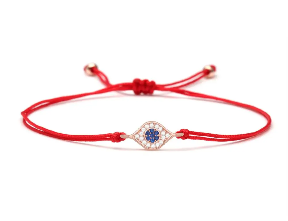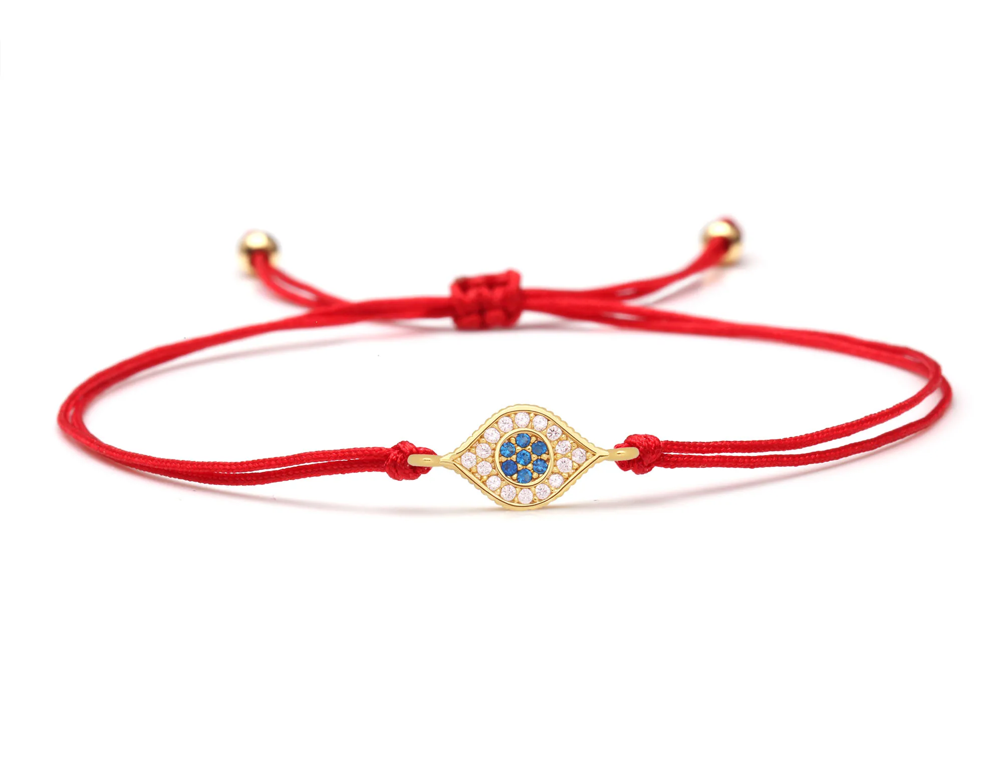 Женский браслет с белым цирконом, очаровательный браслет с голубым цирконием и кристаллом сглаза, новинка 2019, модные ювелирные украшения с медными розовыми и красными нитями