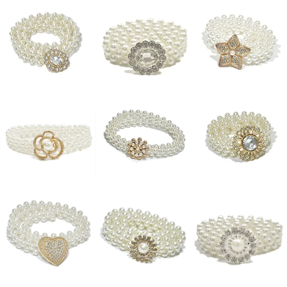 Роскошный женский жемчужный пояс для платья, элегантный цветочный пояс с кристаллами и пряжкой, стразы, свадебный пояс, эластичный пояс для женщин