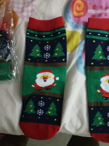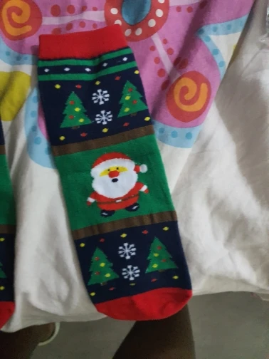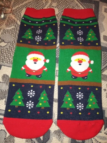 Носки с красивым новогодним рисунком. Соответвует описанию и цена-качество. Детям очень нравятся. Будем заказывать ещё.