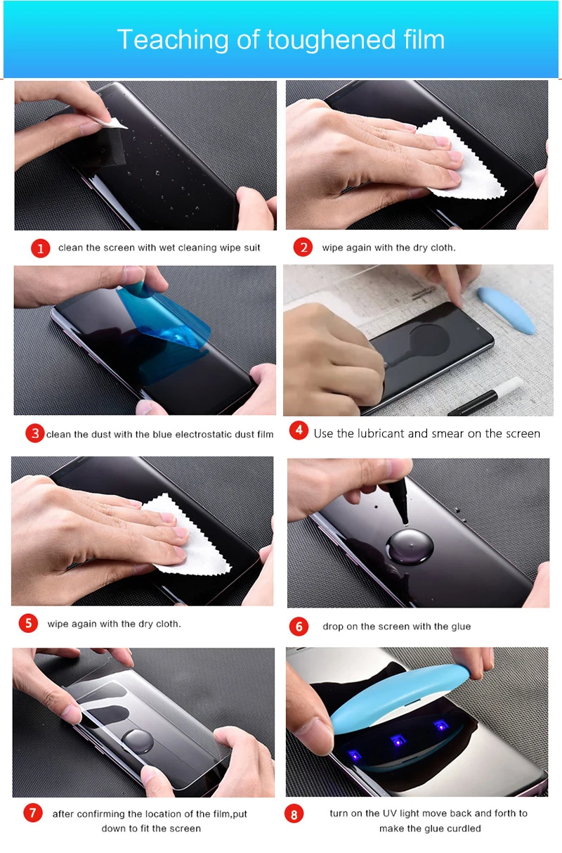 Жидкое УФ-стекло с полной проклейкой для Samsung Galaxy S9 S10 S20 S21 Note 8 9 10 Plus 20