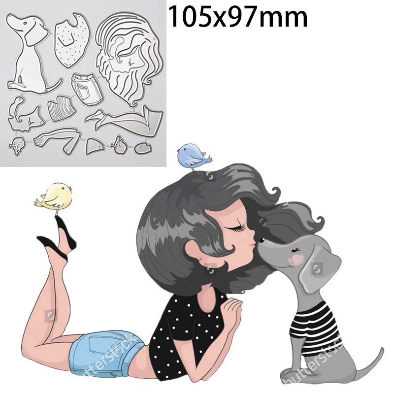 Металлический трафарет для скрапбукинга Kiss Girl с собакой, кукла-птичка