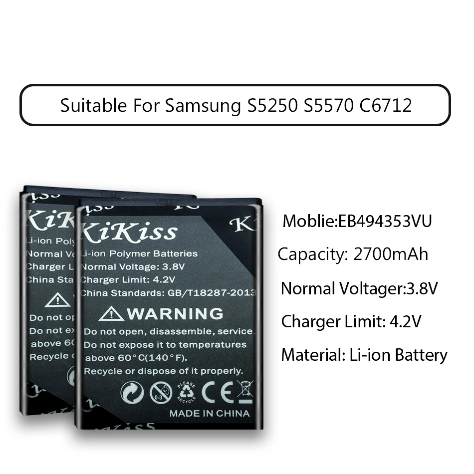 KiKiss батарея для смартфона EB494353VU 2700 мАч для Samsung S5570 S5750 S5330 C6712 S5250 S7230E I559 S5578