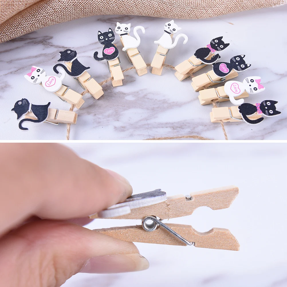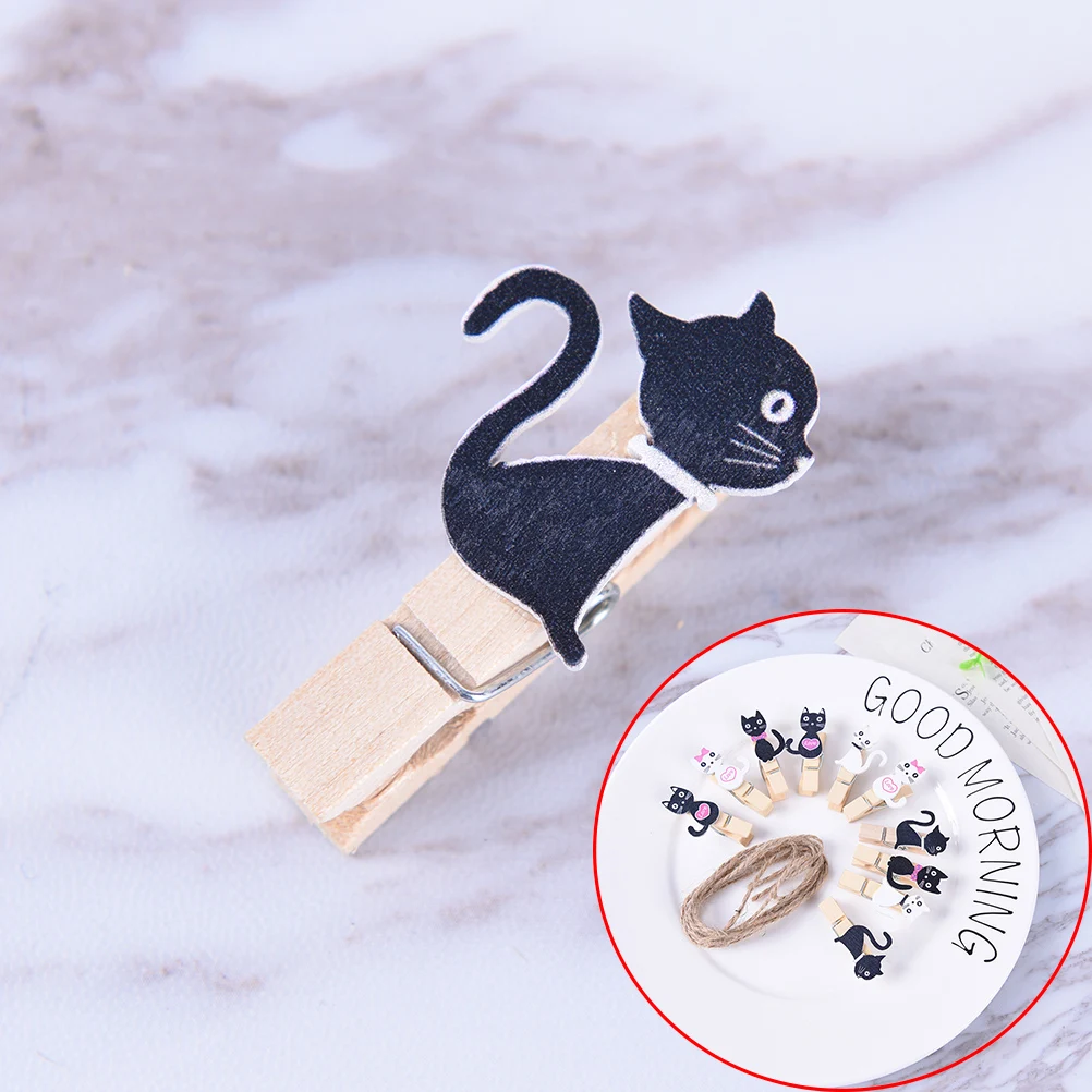 10 шт. деревянные зажимы в виде кошки с пеньковой веревкой, мини-зажим для еды, кавайный деревянный зажим для бумаги, инструменты сделай сам для студентов, школьные и офисные принадлежности, Декор