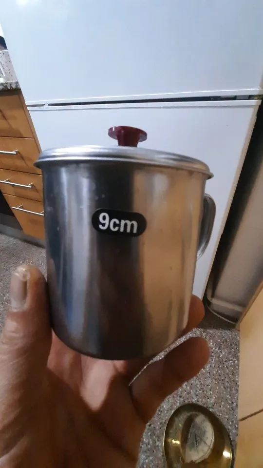 Кружка тонкая и маленькая. Ручка на крышке не такая как на фото продавца. Местами на ручке заусенцы, которые колют пальцы.