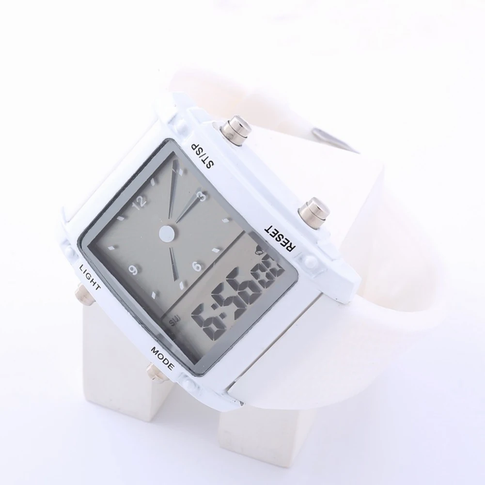 Мужские часы с квадратным циферблатом, двойной Индикация времени, цветной светодиодный Будильник, спортивные часы, электронные наручные часы, Новинка