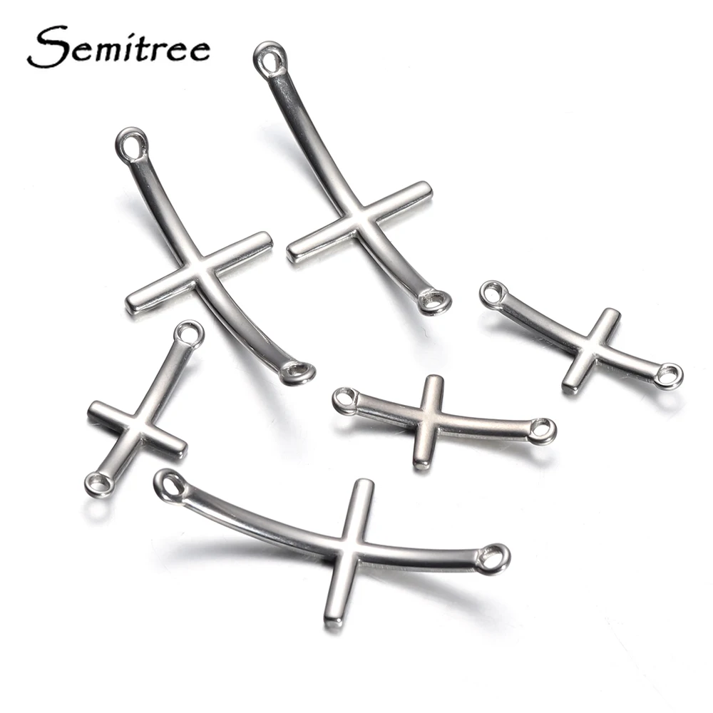 Semitree 5 шт./лот браслет из нержавеющей стали с крестиком, соединители, подвески, подвеска, сделай сам, изготовление ювелирных изделий, товары ручной работы