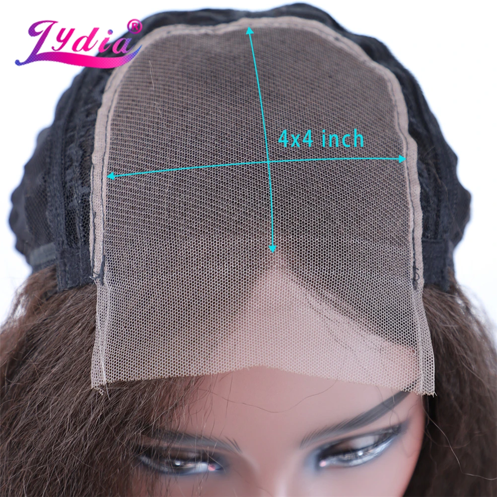 Лидия для женщин синтетические волосы для наращивания 4*4 закрытие парик кудрявые прямые 130% плотность натуральный черный термостойкий парики на каждый день