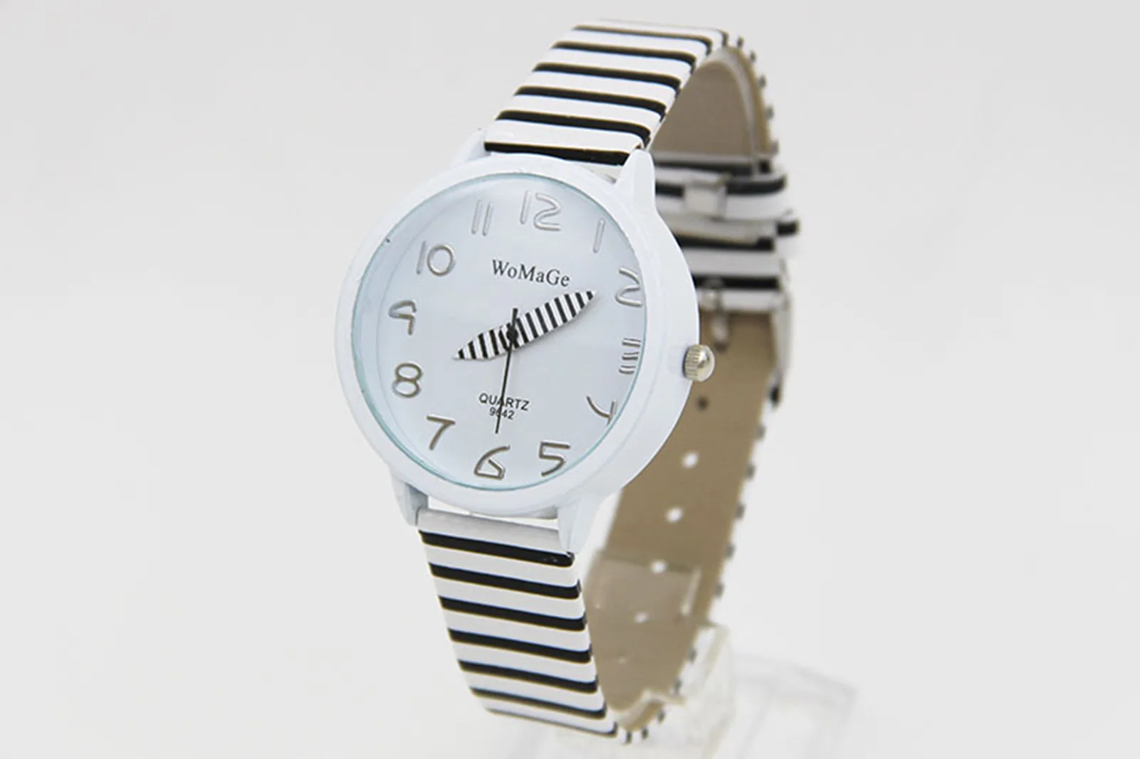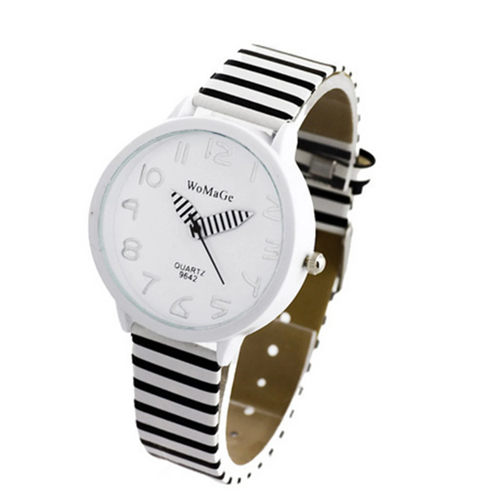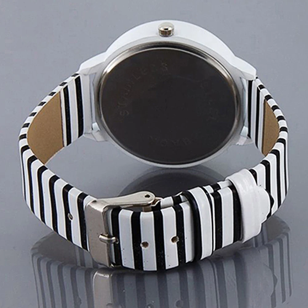 Женские кварцевые аналоговые часы в полоску, с круглым ремешком