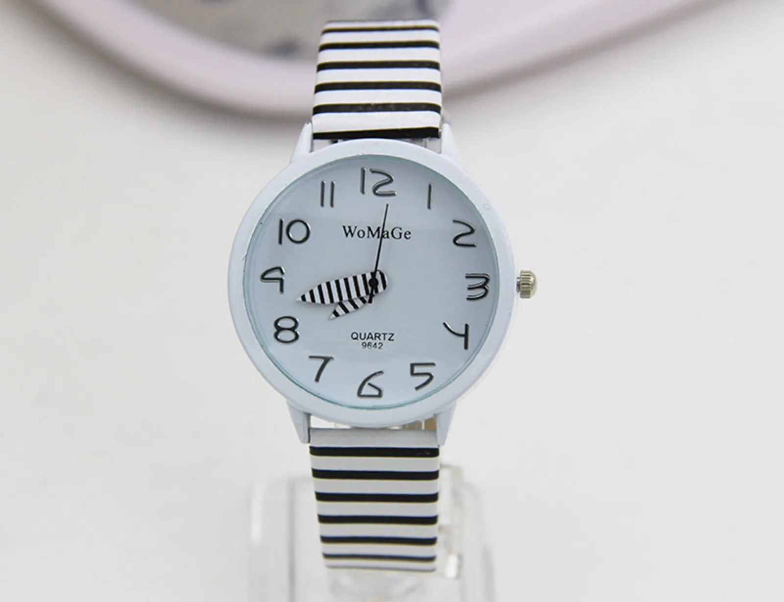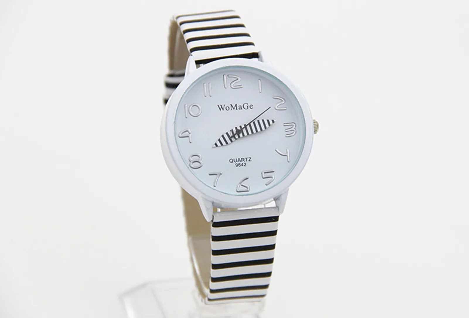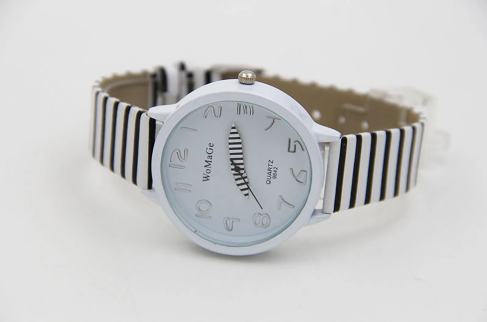 Женские кварцевые аналоговые часы в полоску, с круглым ремешком