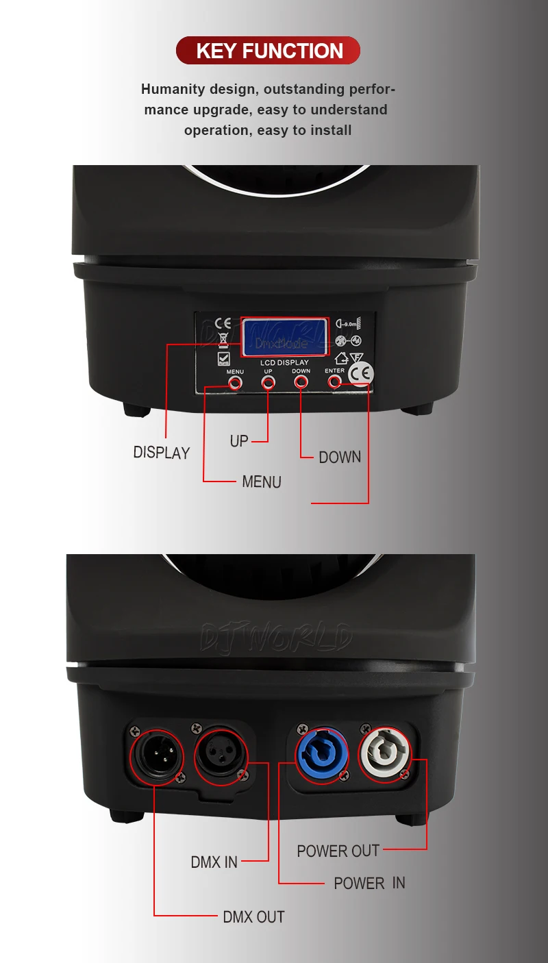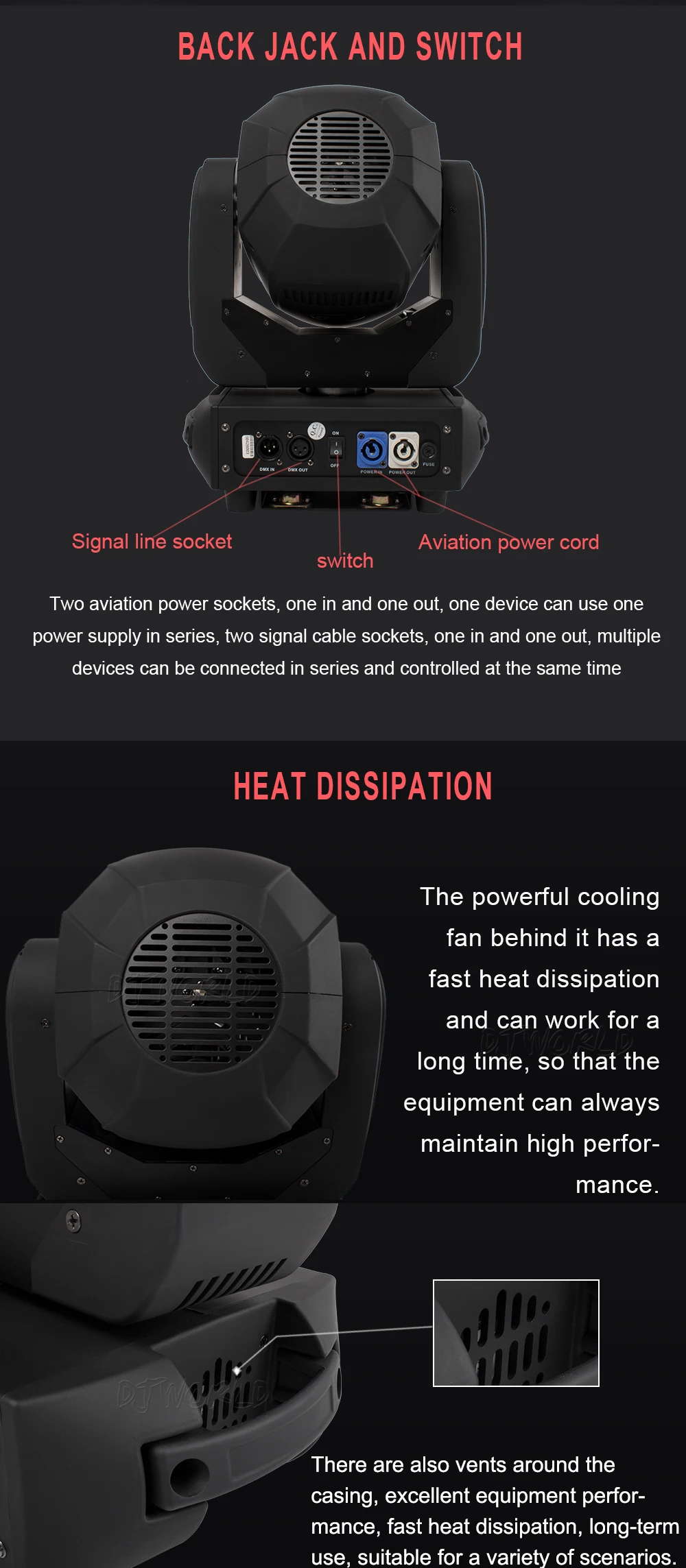 Режимы работы: DMX512, автоматический запуск, звуковое действие, стробоскоп, автономный и главный/ведомый, с богатой расширенной встроенной программой