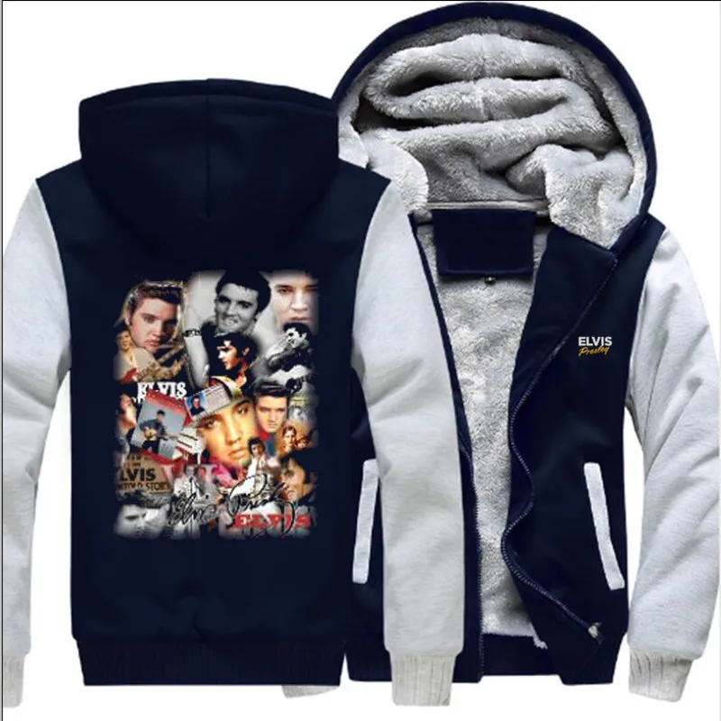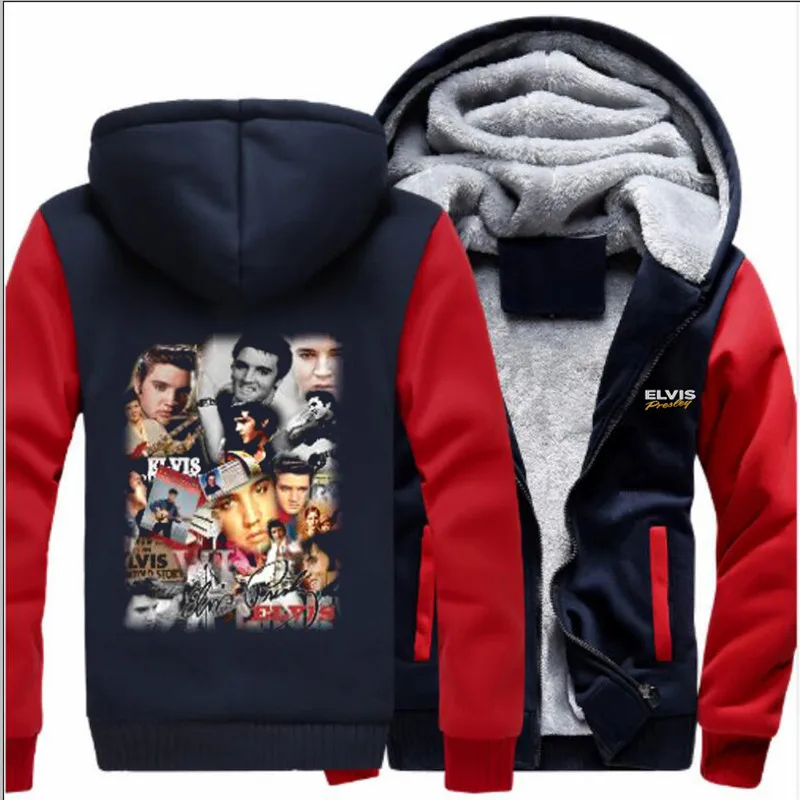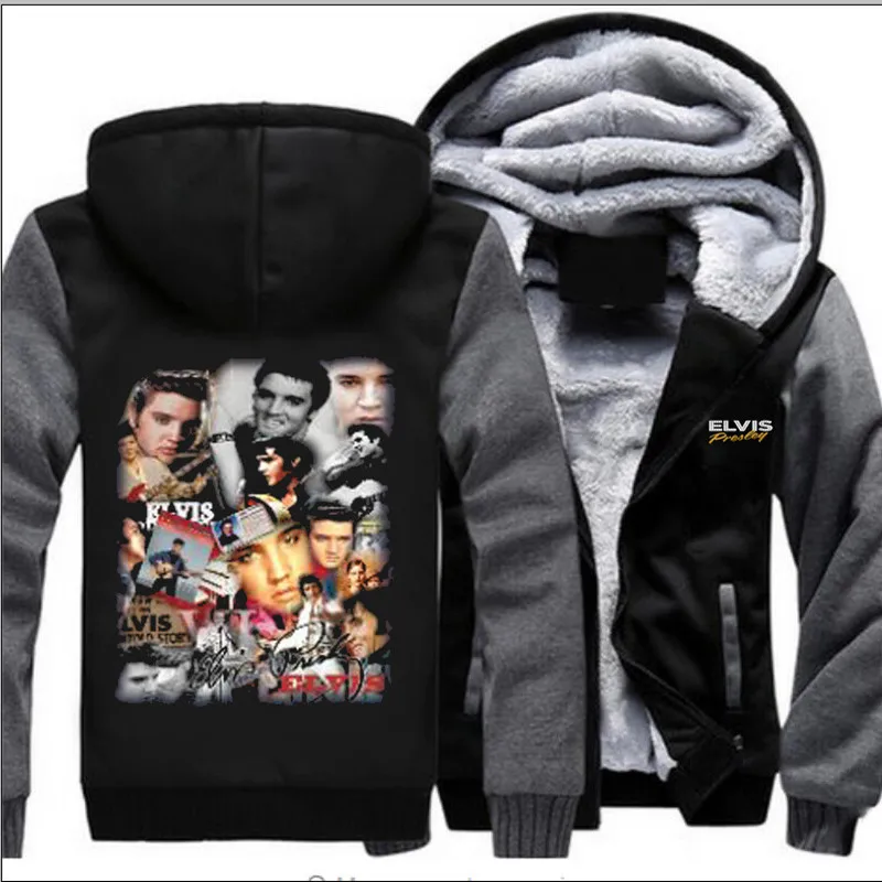 Мужская толстовка с капюшоном Elvis presley, теплая уличная куртка на молнии с принтом, зима 2019