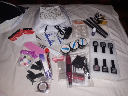 Набор заказывался ради лампы и аппарат для спила, фрезы неплохие для домашнего использования, продавец дополнительно положил наклейки. Лаки не тестила, в догонку заказала другие лаки и фрезы.