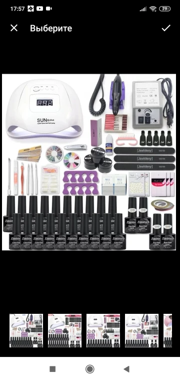 набор соответствует описанию. с территории России до Сверодовской области дошёл за 10 дней. все работает. повреждений нет. единственный минус - небольшое колличество гелей и лаков в пузырьках. как будто на половину наполнены. красивые цветв лаков!!
