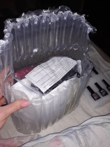 все хорошо упаковано, мне очень нравится) только одно но, заказала 22 ноября, а пришло 25 января. ногти крепкие, спасибо большое)